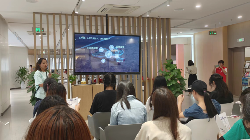 在问答结束后主持人又进行了一些补充,说明了斐乐与安踏的合作关系,斐乐颜色鲜艳且多样化的特点,以及安踏集团现今整个体量全球排名第二的优秀成绩。第四个环节,主持人介绍了实习培训地点,及其薪资待遇,和日常工作的一些具体内容。让同学们更全面地了解此次招聘的目的以及往后培训的安排,让大家可以更好地结合自身情况考虑。
