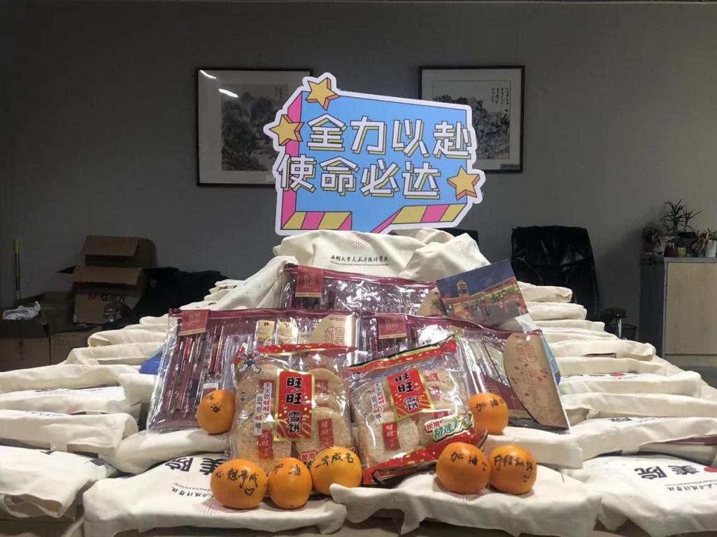 冬日寒气渐盛,这一天午后的教工之家暖意满满,本次活动,学院为考研学习准备了“研途加油包”,小小礼包寓意满满。金榜提名文具,寓意提笔考研,征战四方,香橙寓意心想事成、成功上岸,旺旺雪饼寓意考运旺旺、还有来自学弟学妹的饱含祝福的明星片。