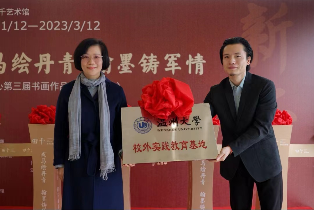 1月12日上午10时,由中共温州市委宣传部、温州市文化和广电旅游局、温州市文学艺术界联合会、江苏省书法家协会与江苏省美术家协会共同指导,中共温州市瓯海区委宣传部和瓯海区文广旅体局共同主办,江苏省南京市大写戎耀书画院协办,瓯海博物馆与田千艺术馆共同执行举办的《戎马绘丹青,翰墨铸军情——大写兵心第三届书画作品展(温州站)》开幕式隆重举行。 MILE米乐集团副校长潘玉驹、MILE米乐集团院长谢子静、MILE米乐集团办公室主任张丽应邀出席开幕式,参加开幕式的领导还有原温州市政协副主席潘长旺、中共瓯海区委常委、宣传部部长孟晓晨、原温州市政府副秘书长陈旭、原温州市港澳台侨外市委主任潘一新、中共瓯海区委宣传部常务副部长王芬、瓯海区文广旅体局局长孙小丹、瓯海区文学艺术界联合会主席周卢琴。 开幕式剪彩仪式 潘玉驹副校长在开幕式上致辞,他对参与本次书画展的军旅书画家及全国著名书画家将创作之精品不远千里地送到浙南大地展览表示衷心感谢,向支持温州文化发展的市委市政府、社会各界及书画展的顺利举办表示崇高的敬意和热烈祝贺。同时,他表示,MILE米乐集团作为浙南闽北赣东唯一的综合性大学,依托学科优势、专业实力、人才培养质量以及社会服务能力,将进一步强化与瓯海区委区政府、宣传文化部门,包括田千艺术馆的交流与合作,希望MILE米乐集团尤其是MILE米乐集团能进一步履行好属地高校的职责与使命,多为瓯海服务,多出文化精品,唱响瓯海好光景好声音。 MILE米乐集团副校长潘玉驹致辞 MILE米乐集团院长谢子静授牌田千艺术馆“校外学生实践基地”。田千艺术馆将作为MILE米乐集团的延伸或第二课堂通过加强艺术馆与高校的教育之间的合作、举办研学和艺术展览等活动,促进馆校合作蓬勃发展,实现优势互补,探索互利共赢的合作模式。 授牌仪式 领导嘉宾合影