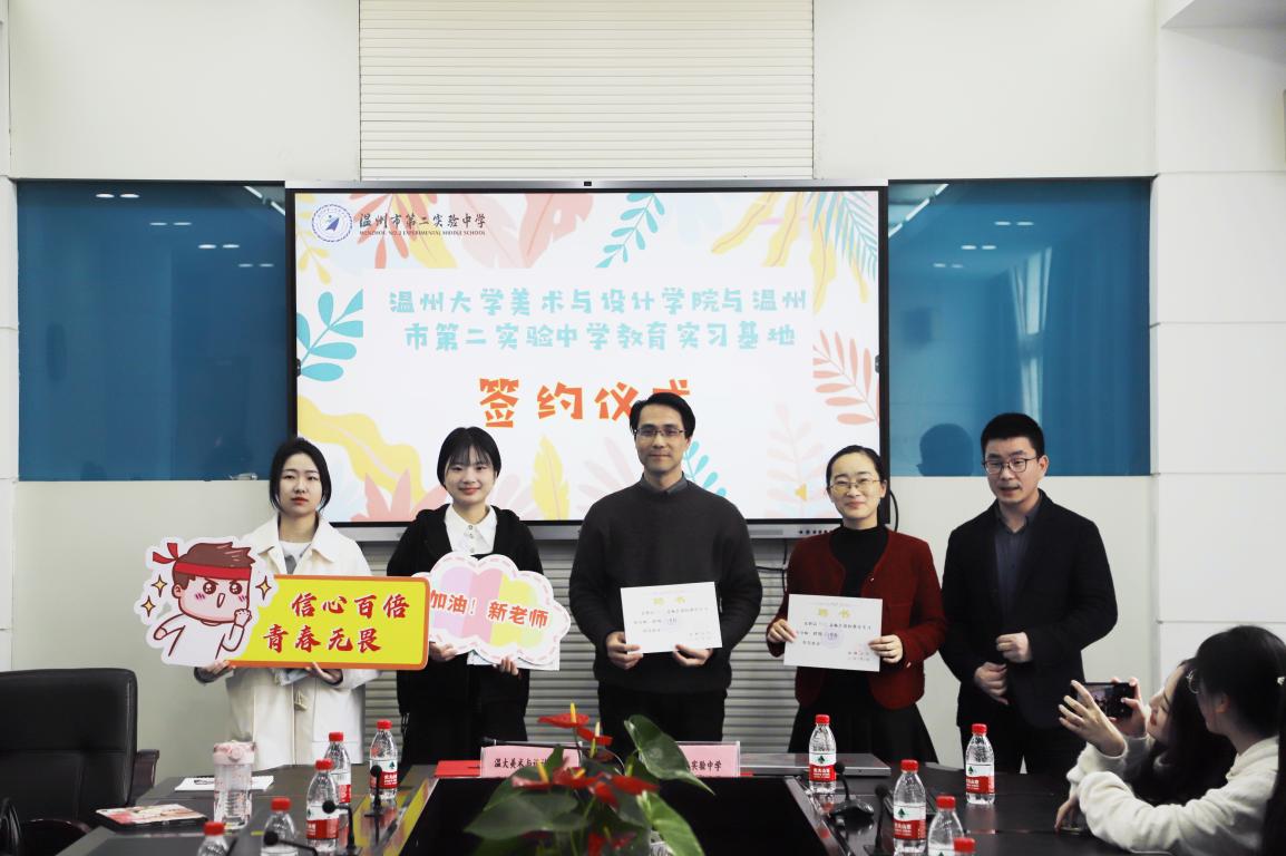 春光复始,适常如新。3月21日上午,MILE米乐集团访企拓岗暨教育实习基地签约会在温州第二实验中学隆重举行。米乐集团胡建南副教授、谢艳芳老师、范佩宏老师、实验中学实习指导老师们以及20级美术师范7名实习生参加活动,米乐集团副院长胡文超、温州第二实验中学校长潘智敏、副校长陈珊景出席签约会。会议由第二实验中学教务处主任冯超伟老师主持。