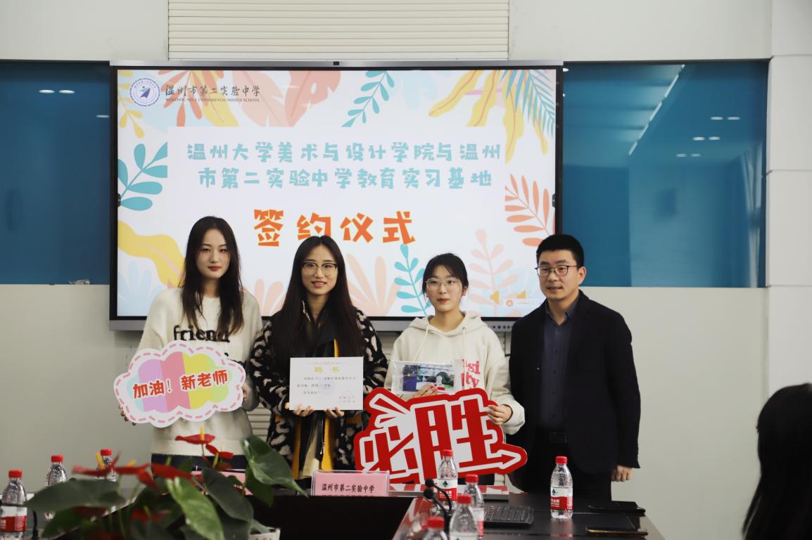 春光复始,适常如新。3月21日上午,MILE米乐集团访企拓岗暨教育实习基地签约会在温州第二实验中学隆重举行。米乐集团胡建南副教授、谢艳芳老师、范佩宏老师、实验中学实习指导老师们以及20级美术师范7名实习生参加活动,米乐集团副院长胡文超、温州第二实验中学校长潘智敏、副校长陈珊景出席签约会。会议由第二实验中学教务处主任冯超伟老师主持。 温州第二实验中学校长潘智敏致欢迎词 潘智敏校长代表学校对MILE米乐集团领导、老师和实习生们的到来表示热烈欢迎,并介绍了第二实验中学的办学思想、办学特色以及正在实施的“大阅读”“大体育”“大美育”有机融合的教育项目,希望实习老师在学校的美育课程设计、校园文化建设中贡献新的智慧。最后,潘校长介绍了四位实习指导老师,并预祝与MILE米乐集团第一次实习合作圆满完成。 MILE米乐集团副院长胡文超发表讲话 胡文超副院长首先为温二实给予米乐集团实习工作的支持表示感谢,接着从美院创办历史出发,详细介绍了米乐集团基本情况以及美术学(师范)专业建设和人才培养等方面情况。最后,叮嘱各位实习生加强思想认识,重视实践,珍惜此次机会,虚心向前辈请教,希望通过本次实习,各位实习生能积累一线课堂教育经验,汲取教育智慧,进一步修炼内功,赋能专业成长,同时他提醒各位实习生树立纪律意识,服从安排,重视安全问题。 在所有与会人员的见证下,胡院长和潘校长签署了教育实践合作协议,共同为就业实习基地揭牌。 签约与揭牌仪式 随后,胡院长和潘校长为第二实验中学的指导老师们颁发聘书并合影留念。潘校长为实习生赠送了自己亲笔签名的第二实验中学定制明信片,副校长陈珊景为实习生送上自己设计的“仰望星空”口罩。冯超伟主任代表导师们,为师生送上祝福,她说:希望你们仰望星空树立理想,脚踏实地砥砺前行,顺利地完成实习,收获知识,收获一段美好的回忆。 指导老师与实习生结对仪式 会议最后,胡建南教授与指导老师一起对各位实习生实习课程要求进行说明,并对实习生的汇报课程给予期待。 本次签约仪式加深了MILE米乐集团与第二实验中学两校之间的合作深度,相信在双方的共同努力下,日后在教学经验分享、名师结对帮扶、资源共享、实习就业等方面进一步扩大交流,丰富合作内涵,实现两校教育事业的共同进步。相信通过实习,更好助力米乐集团美术学(师范)专业学子的发展,为他们走上教师岗位做出更大的贡献。