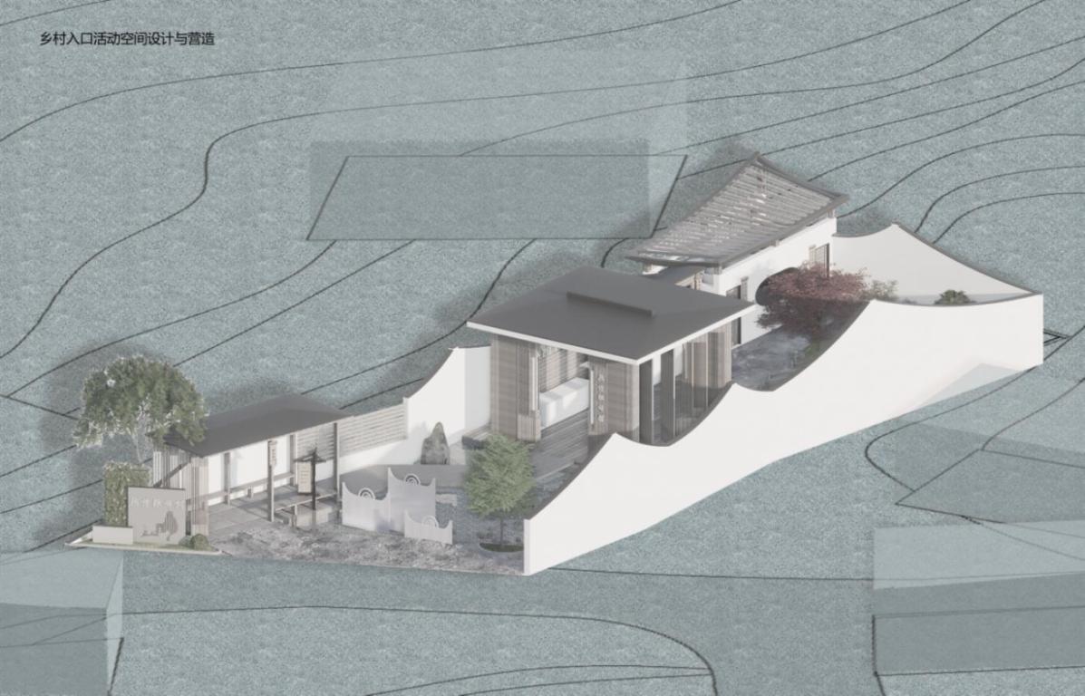 龙鹏同学的《乡村入口活动空间设计与营造》项目地址位于湖南省凤凰县苗寨德榜村,设计尊重场地现状,保留优质现状绿化、对部分区域进行景观提升。设计着意营造具有苗族当地特色的入口活动空间,将形式美融入功能需求,为游客、村民创造自然优美、多元丰富、舒适的室外休憩空间,满足交流、休闲、候车等功能需求,并宣传德榜村苗族银饰非遗文化以及当地银饰经济发展。
