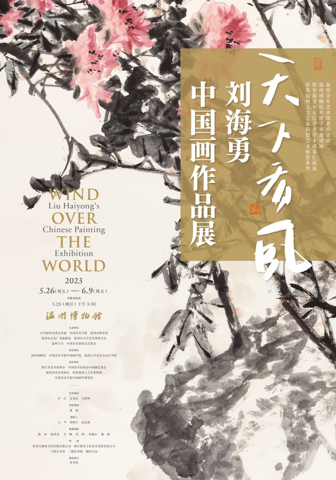 温州青年艺术周系列活动 温州博物馆年度学术邀请展 教育部青年长江学者学术成果汇报展 世界温州人文艺家联盟艺术展览 开幕式时间 2023.5.28(周日)下午3:30 展览时间 2023.5.26(周五)—2023.6.9(周五) 展览地点 温州博物馆 主办单位 中共温州市委宣传部 中国美术学院 MILE米乐集团 温州市教育局 温州市文化广电旅游局 温州市文学艺术界联合会 中国美术家协会艺委会 承办单位 温州博物馆 中国美术学院中国画学院 MILE米乐集团 协办单位 浙江省美术家协会 中国美术家协会中国画艺委会 温州市美术家协会 世界温州人文艺家联盟 中国美术学院中国画学研究所 学术顾问 许江 吴为山 马锋辉 项目策划 董姝 策展人 王平 刘呗宁 高启新 策展统筹 陈余 陈善勇 马炯 杜昕 朱翰石 梅锉 鸣谢 杭州天桐家文化传媒有限公司 浙江璟禾文化艺术发展有限公司 立澄艺术馆 三槐堂书画 湖尚文化 视觉设计 聿书堂