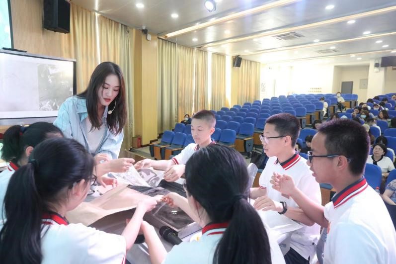 2023年5月29日下午,MILE米乐集团20级美术学(师范)实习总结汇报会在温州第二实验中学举行,MILE米乐集团苏步青学院党委书记应中、执行院长姜锐、MILE米乐集团副院长顾任飞、MILE米乐集团教师培养基地主任胡珏等领导和嘉宾,来自温州第二实验中学、温州第二外国语学校、温州市第十二中学、温州市第十九中学、温州南浦实验中学和温州梧田第一中学的校外导师,MILE米乐集团全体实习导师,以及20级、21级本科生、学科教学(美术)研究生共196人参加汇报会。会议由第二实验中学的楼林子老师主持。 活动伊始, 各位嘉宾、老师进行了合影留念,随后顾任飞副院长、胡珏老师对嘉宾的到来表示热烈欢迎,对各位指导老师给予的精心培养表示感谢,同时也肯定了20级实习生在实习过程中的付出。 第一节展示课是由温州第二实验中学实习生代表叶佳慧带来的自编课程《水之道》-梨园风骨寄丹青。课堂以水袖舞作为导入,整堂课的氛围充满中华古典韵味,将水袖与国画水墨纹理相结合,将水拓作品与戏曲人物进行联想创作,让大家眼前一亮。 第二节课是由温州南浦实验中学实习生代表姜景皓带来的七年级课程《北京故宫—千里江山图》。课堂以视频方式导入,带同学走进画中世界,老师从多角度讲解分析画作,让流行音乐与古画韵律相结合,碰撞出了不一样的火花。 第三节课由温州第二外国语学校实习生代表沈晔同学,为我们带来了以纸为载体的立体构成课程《纸构成》。课堂开始让学生自由将手中的纸进行立体设计,用最短的时间感受到了纸的材质体验。这节课通过纸张表现韵律,并与生活中建筑设计、大自然景观等相结合,让学生对立体构成抽象的概念有了直观的理解,更让学生感受到生活中艺术无处不在! 汇报课结束之后,胡建南老师、林川老师进行了现场评课,两位老师对各位实习老师的汇报表示肯定,同时也提出了需要改进的地方。 随后,初中组实习生代表姚敏敏同学对此次实习汇报进行了总结以及对各个学校表示衷心的感谢,并通过一段段生动活泼的记录向大家展示了近两个月来实习生活的点滴。 汇报会最后,20级实习生们向指导老师们献上了精心准备的礼物以表达感谢,并且与老师们进行了合影留念,本次实习汇报也落下了帷幕,愿温大美院学子不忘初心,砥砺前行,愿其前程似锦,未来可期!