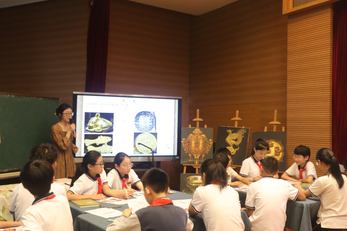 第三节课由南浦小学西校区的实习生代表赵梦洁带来六年级上册的《金银器》。课程开始由南浦小学的实习生们为大家带来了一段情景片段,以此展开金银器的课题,一起去感受传统金银器的独特美感和华丽。