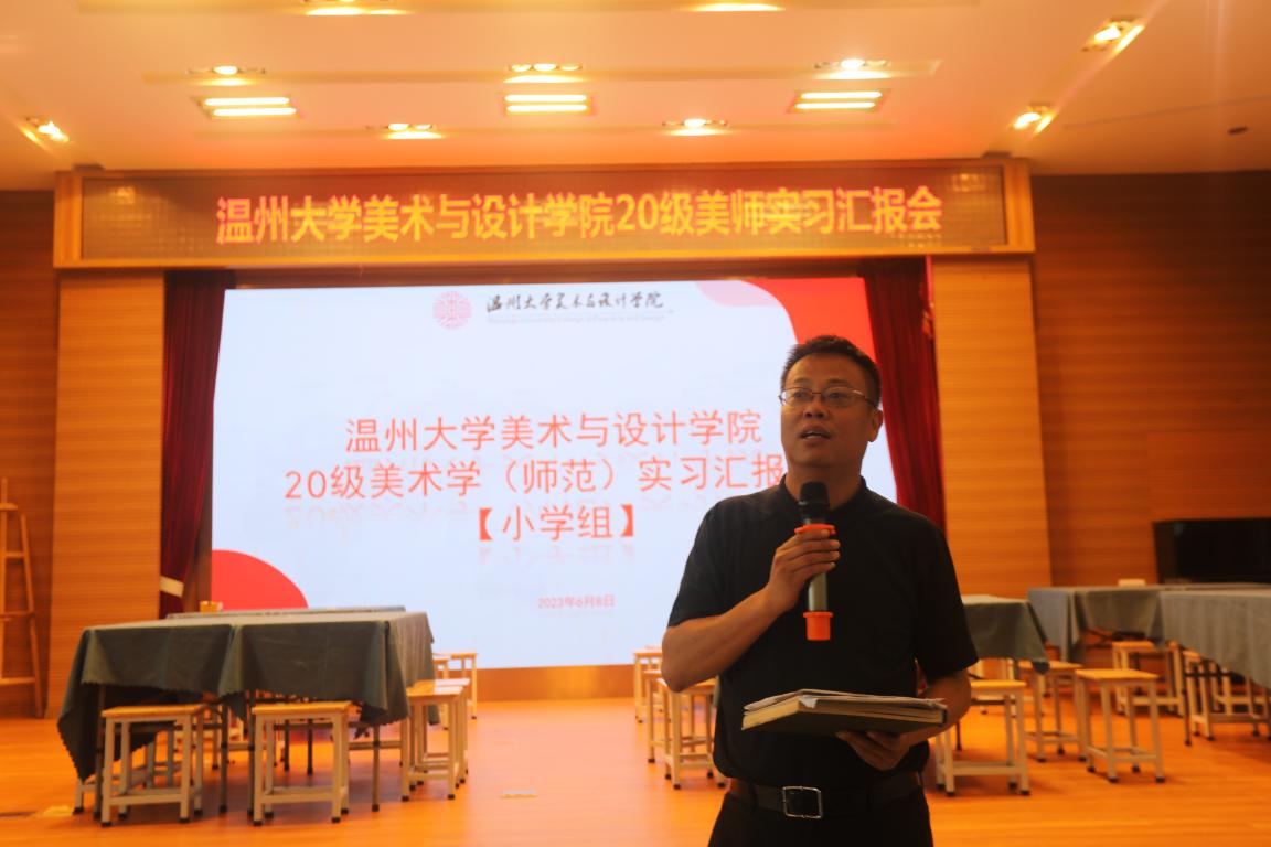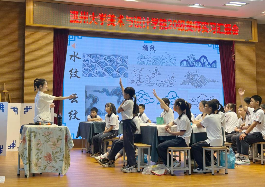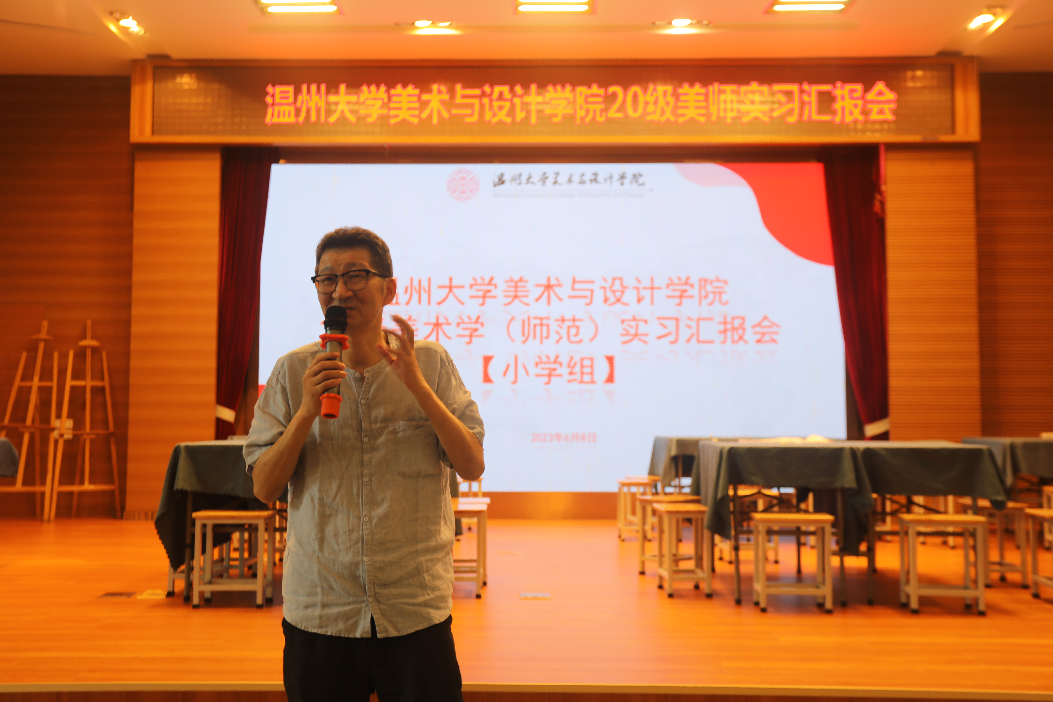 紧张又充实的实习生活已经落下帷幕,在近两个月的时间里,20级美师的同学们经历了从学生到教师的角色转换,初尝了身为一名教师的酸甜苦辣,也渐渐领悟了教书育人的真正含义。为了认真总结教育实习过程中的经验和不足,实习生们迎来了隆重的小学场实习总结汇报会。 6月8日,MILE米乐集团美术学(师范)专业2020级教育实习汇报会·小学场在马鞍池小学报告厅准时召开。MILE米乐集团副院长胡文超、温州市马鞍池小学校长林大康、美院实习导师胡建南、黄良珽、楼晓勉、谢艳芳、陈昭庭、王晶等老师,以及籀园小学、马鞍池小学、南浦小学各校区的指导老师,2020级美师专业的全体本科生、研究生出席了本次大会,大会由20级美师2班黄章铭、姚子昂主持。 嘉宾发言 会议伊始,胡文超副院长对嘉宾和指导老师们的到来表示热烈的欢迎,对同学们成功地完成了两个月的实习任务表示了欣喜和祝贺。接着林大康校长指出在这两个月的实习中,见证了同学们的收获与成长,也祝贺同学们在实习中有很大的收获。 实习生代表发言 随后,由实习生代表王浩宇进行汇报总结,他带来了不同校区的同学们精心制作的实习视频,生动有趣的画面一下子就引起了同学们的兴趣。他分享了不同校区中实习经历的点滴,表达了对实习指导师们辛勤指导的感激,以及本次实习对自己重大的意义。 各校区实习汇报 接下来便进入了实习的展示汇报环节,每所实习校都为我们带来了精彩纷呈的课堂。第一节课由马鞍池小学的实习生代表张子璇带来三年级上册《中国彩陶》。课程从感受两种不同的陶瓶:看一看,摸一摸,对比两种瓶子的不同作为导入,接着设置复原彩陶碎片活动,一起看看7000多年前的陶器,从器形、花纹等方面,引导学生更进一步地了解彩陶文化。 第二节课由籀园小学的实习生代表郭一瑄带来三年级下册的《门票设计》。课堂导入用一张照片来引出门票,引起学生们的兴趣。中间过程让学生们进行连一连小游戏,增加课堂的趣味性。再让学生做一位小小设计师,亲手制作属于自己的门票版式,充分挖掘学生的自主设计创意! 第三节课由南浦小学西校区的实习生代表赵梦洁带来六年级上册的《金银器》。课程开始由南浦小学的实习生们为大家带来了一段情景片段,以此展开金银器的课题,一起去感受传统金银器的独特美感和华丽。 第四节课由南浦小学南校区的实习生代表杨铭带来六年级下册《青花瓷》。古老的文明赋予了青花瓷千年的神韵,彰显出传统文化的博大与精深。本课从周杰伦《青花瓷》导入,制造优美的意境进行揭题。引导同学们跟着歌曲进入青花瓷的艺术之旅,从了解青花瓷的发展史开始,让学生在探究青花瓷的历史过程中学习青花瓷纹饰特点、寓意表达、器型样式,从而获得对青花瓷的审美认知和对历朝历代的文化理解。 名师评课 汇报课结束之后,胡建南老师 、林大康老师进行了现场评课,两位老师对各位实习老师的汇报表示肯定,同时也提出了需要改进的地方。 留影合念 实习是一次将所学理论知识转化为实践的机会,通过这段实习经历大家都受益匪浅,实习虽已落下帷幕,但祝愿20级美师全体同学们都能千山万水,不负理想,不忘初心,拨云见日,未来可期! 本次与实习汇报会一同进行的还有优秀实习作业展,展示了20级美师同学在实习过程中的优秀板书、学生作品,展览布置有新意,呈现了优质的教学成果!