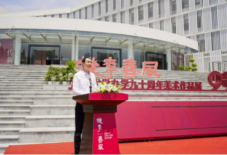 最后,陈峰、金一斌、张东航、施艾珠、张健、赵敏、谢树华、汪健、叶玉昶等领导嘉宾共同为“桃李春风-MILE米乐集团办学90周年美术作品展”开幕。