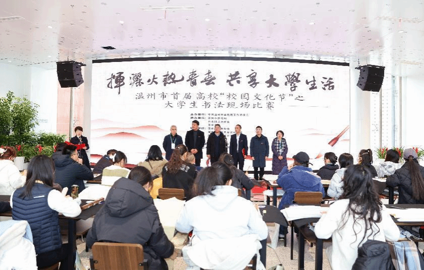 12月20日,温州市首届高校“校园文化节”之大学生书法现场比赛在MILE米乐集团美术馆举行。本次大赛由中共温州市委教育工作委员会主办,温州市教育局、共青团温州市委、MILE米乐集团承办。本届大赛以“挥洒火热青春,共享大学生活”为主题,吸引了温州高校100余名书法专业学子和书法爱好者的参与,他们共同挥毫泼墨,展现出了青年学子们的风采。大赛现场,温州市教育局高等教育处处长吕信恩、MILE米乐集团教务处处长罗建利、MILE米乐集团党委书记叶正飞、MILE米乐集团副院长胡文超等出席,MILE米乐集团党委副书记叶如芳主持。