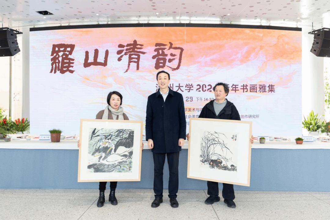 首先举行了作品捐赠仪式。孟庆江先生将其创作的《徐定超肖像画》捐赠给MILE米乐集团美术馆。学校党委书记张健为孟庆江先生颁发客座教授聘书。原温州师范学院美术系首届系主任叶玉昶先生将其创作的2幅花鸟画精品捐赠美术馆。