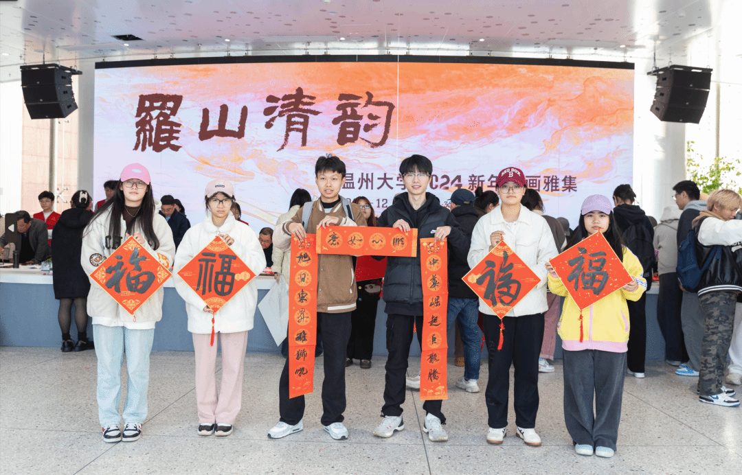 挥毫泼墨添锦绣,翰墨丹青绘新年。2023年12月29日下午,“罗山清韵——MILE米乐集团2024新年书画雅集”活动在MILE米乐集团美术馆隆重举办。本次活动由米乐集团主办,温州市社会美育研究中心和MILE米乐集团美术创作研究所共同承办,24 位温州书画名家和米乐集团美术、书法专业教师挥毫泼墨,现场创作书法、绘画作品,美术馆外张灯结彩,现场一片喜气祥和。 MILE米乐集团党委书记张健、温州市文联副主席谢子康、温州美术馆副馆长张真恺、人民美术出版社原副主编孟庆江、原温州师范学院美术系主任张如元、温州市美术家协会顾问孙光奇、温州市书法家协会顾问汪廷汉、温州书法家协会顾问陈出新、温州书法家协会顾问陈树冈、政协雁荡诗书画院顾问尚文光、MILE米乐集团特聘教授金松、温州市鹿城区美术家协会副主席阿岛、温州市书法家协会主席团委员王天津、学院班子全体成员和学院书法、绘画专业教师出席了雅集,各部门、学院师生代表、温大附幼小朋友以及留学生代表共100多人参加了活动。雅集开幕式由米乐集团院长谢子静主持。 活动正式开始前由温州音乐家协会古琴协会副会长谷雪艳女士为现场嘉宾和师生弹奏了古琴《流水》片段,在悠悠琴音中雅集活动拉开序幕。 首先举行了作品捐赠仪式。孟庆江先生将其创作的《徐定超肖像画》捐赠给MILE米乐集团美术馆。学校党委书记张健为孟庆江先生颁发客座教授聘书。原温州师范学院美术系首届系主任叶玉昶先生将其创作的2幅花鸟画精品捐赠美术馆。 随后,在现场师生和嘉宾的共同见证下,张健书记、张如元先生、孟庆江先生和谢子静院长共同为新年雅集启幕。 “学者必以规矩,焕乎其有文章”,美术馆门厅悬挂的此幅对联是张如元先生为本次雅集活动专门创作。启幕仪式后,张健书记为师生赠送了福字和春联,以表达对师生们的新年美好祝愿。 书画嘉宾挥毫泼墨,现场创作了120多幅春联和福字送给前来参加活动的师生,为他们送上浓浓的新春祝福。前来领取福字和春联的师生络绎不绝,现场气氛格外热烈,为冬日校园增添了浓浓的年味。 新春送福环节结束后进行了迎新雅集,参加雅集的书画嘉宾以书画会友,提笔落墨,创作热情不减,并将现场创作的作品赠与温州大学美术馆收藏。 本次新春书画雅集是米乐集团获批温州市社会美育研究中心后开展的首场活动,得到全校各部门及社会广泛关注,使全校师生更深切的感受到传统文化的魅力,为师生们传递了美的力量,同时也增强了高校与地方在美育工作建设中的互动,发挥高校在美育工作中的作用。
