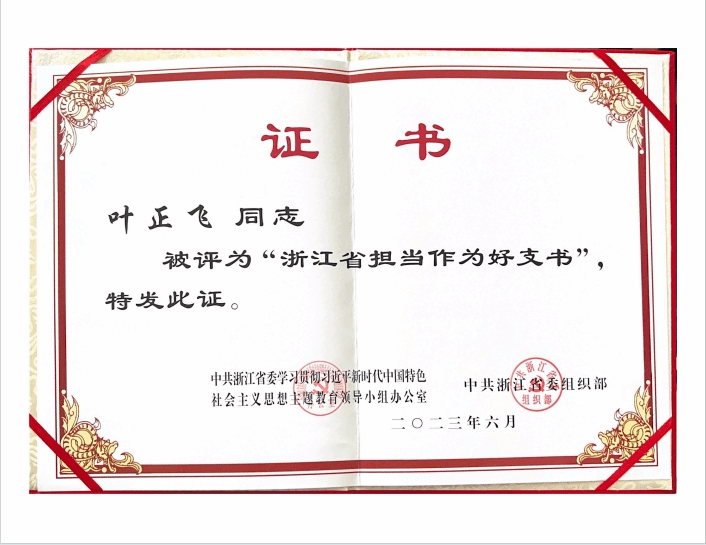 喜报:米乐集团党委书记叶正飞同志荣获“浙江省担当作为好支书”荣誉称号