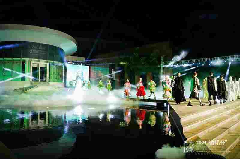 在碧波荡漾的水面上,模特们身着设计师们的匠心佳作,轻盈走过,每一步都散发出独特的时尚魅力,为观众带来了一场视觉盛宴。本次发布会共展出90套精美作品,分三个篇章,第一篇章《春风抚——水的荡漾,风的形状》的作品风格多样,囊括了自然与诗意、简约与优雅、温柔与力量等元素,传达出对自然和谐的深刻理解。每一套服装都如同春风拂面,轻盈而充满生命力。第二篇章《纳四海——智慧为舵,意志做桨》的作品风格涵盖了现代与复古、理性与感性、简洁与复杂等多种元素,体现了设计师们对未来时尚的独特见解和大胆尝试。第三篇章《梦扬帆——千年商港,海丝启航》的作品风格多样,包含了古典与现代、民族与国际、庄重与自由等元素,展示了设计师们对文化传承与创新的深刻思考与实践。