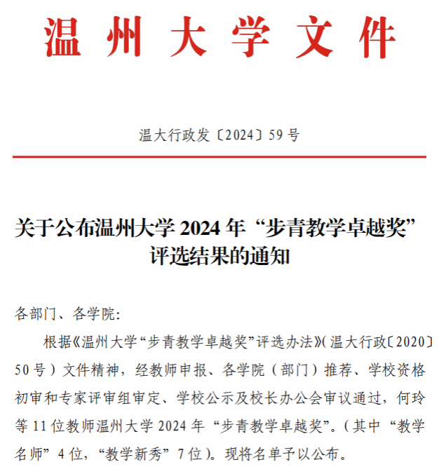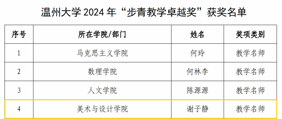 喜报:MILE米乐集团院长谢子静同志荣获MILE米乐集团“教学名师”荣誉称号