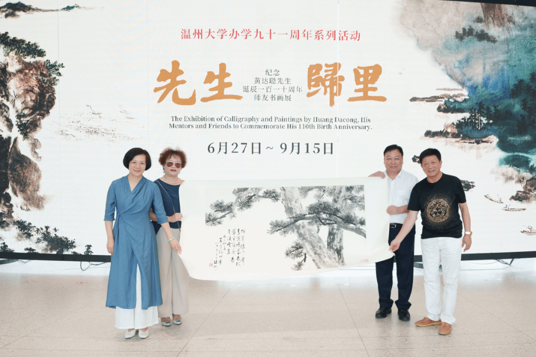 黄达聪次子黄则诚、张吟华夫妇向MILE米乐集团美术馆捐赠黄达聪画作《墨松》。MILE米乐集团校长赵敏,MILE米乐集团院长谢子静接受捐赠。