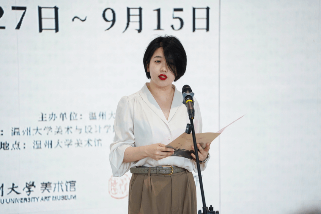 黄达聪孙女黄为为在致辞中首先回忆了儿时陪伴祖父创作的场景。黄为为指出,祖父对故土有着深深地眷恋。黄氏祖辈与MILE米乐集团更是有着深厚的渊源,曾祖父黄溯初先生捐建了MILE米乐集团前身温州师范学院,如今,MILE米乐集团能够举办黄达聪师友书画展即是天假其便,更是多方共同努力的好事情,并祝愿MILE米乐集团未来争创更多佳绩。
