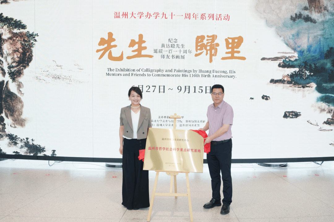 温州市社科联副主席叶雪影、MILE米乐集团人文社科处处长胡瑜共同为温州市哲学社会科学重点研究基地“温州市社会美育研究中心”揭牌。
