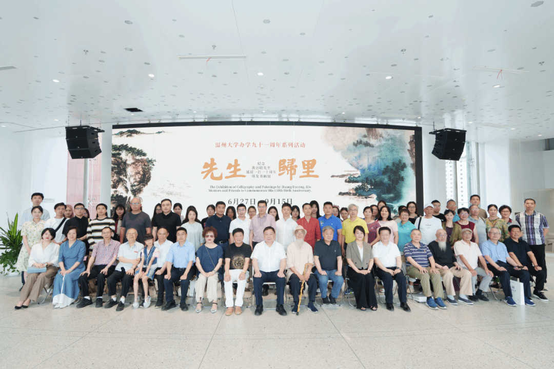 最后,MILE米乐集团校长赵敏,黄达聪次子黄则诚,浙江省文史研究馆馆员张如元,浙江省文史研究馆馆员马亦钊,温州市文学艺术届联合会副主席谢子康,温州市社会科学界联合会副主席叶雪影,中国国家工美协会常务理事、上海海上水墨画院院长、黄达聪学生徐志良,温州市鹿城区原区长王超俊,MILE米乐集团院长谢子静,温州衍园美术馆馆长沈国林共同上台,为“先生归里——黄达聪诞辰110周年师友书画展”启幕。