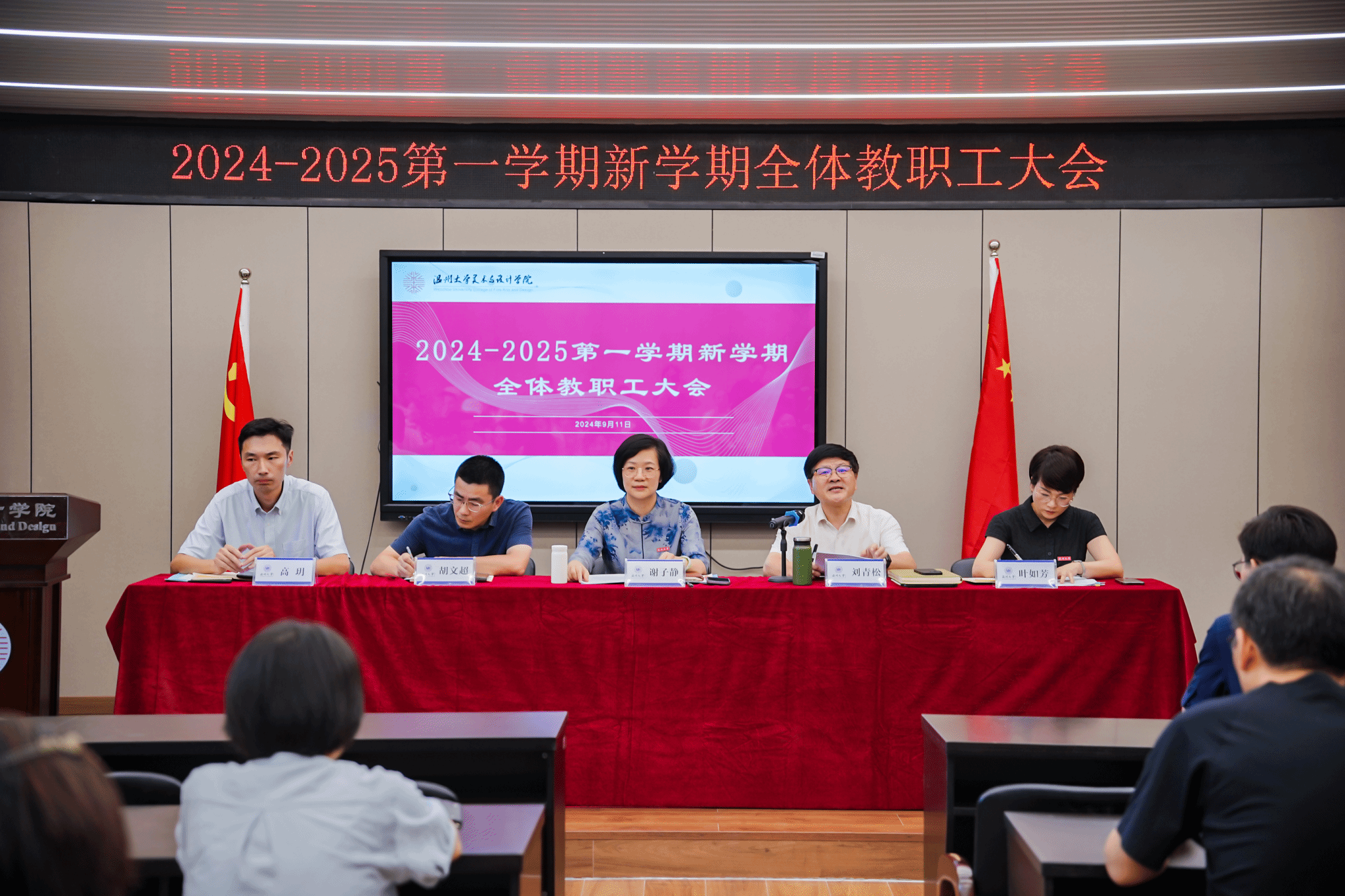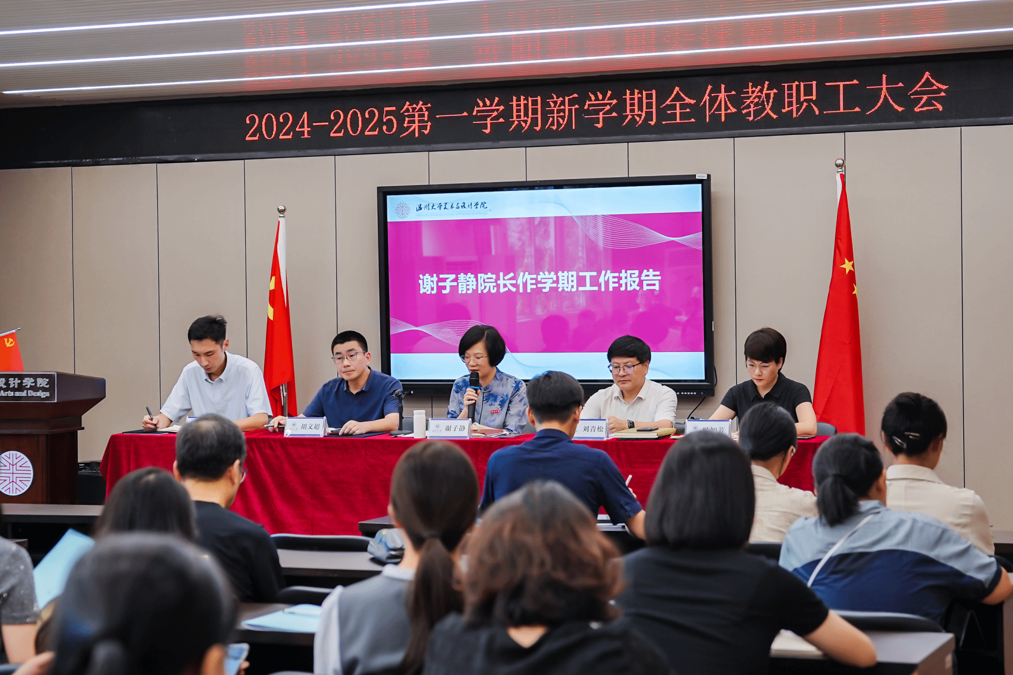 会上,谢子静院长作学期工作报告,她总结了过去一学期和暑假期间,学院各系室、部门在争创一流学科、学术交流等八个方面取得的优异工作成绩,肯定了老师们取得的丰硕成果和服务地方的各项行动。随后,谢子静院长详细部署了新学期的工作重点,学院要锚定“两大目标”,立足“十大重点项目”,使米乐集团在专业内涵发展、学科提升、毕业展秀、毕业生就业质量、引才引智、美育文化、维稳与安全、党建促发展等方面取得新的成效。同时,顺应时代发展新契机,拥抱AI新科技,迎接教育未来,发挥学科、专业优势,推动美育建设,提升美育成效,强化产业链接,促进校地服务与合作,打造学院发展新亮点。胡文超副、叶如芳副书记、高玥委员作工作部署,刘青松书作新学期工作部署。