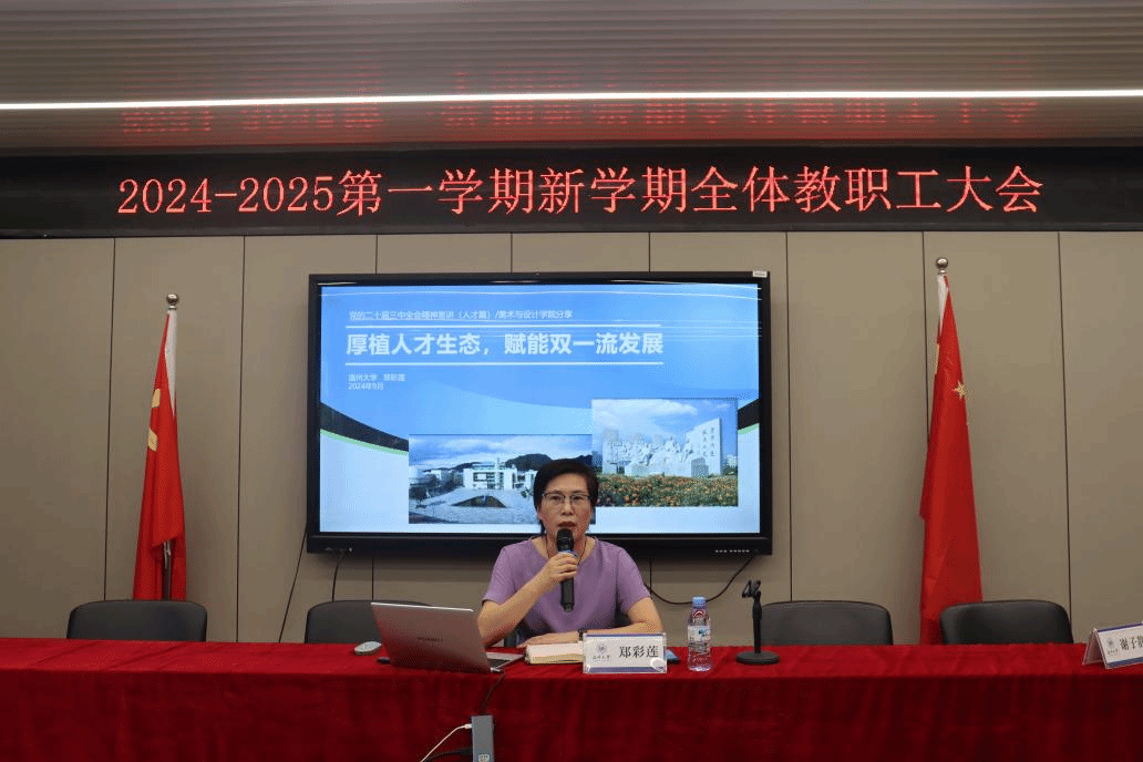 金秋奋进时,万象迎新季。9月12日下午,MILE米乐集团召开2024-2025学年秋季新学期全体教职工大会,本次会议由党委书记刘青松主持,学院领导班子、全体教职工参加。恰逢第40个教师节来临之际,会上,刘青松书记对全体教职工致以诚挚的问候和祝福。会议的第一项议程,举行了新教师入职仪式,由谢子静院长为本学期三位新入职的教师佩戴校徽、赠送大礼包、颁发导师聘书。会上,谢子静院长作学期工作报告,她总结了过去一学期和暑假期间,学院各系室、部门在争创一流学科、学术交流等八个方面取得的优异工作成绩,肯定了老师们取得的丰硕成果和服务地方的各项行动。随后,谢子静院长详细部署了新学期的工作重点,学院要锚定“两大目标”,立足“十大重点项目”,使米乐集团在专业内涵发展、学科提升、毕业展秀、毕业生就业质量、引才引智、美育文化、维稳与安全、党建促发展等方面取得新的成效。同时,顺应时代发展新契机,拥抱AI新科技,迎接教育未来,发挥学科、专业优势,推动美育建设,提升美育成效,强化产业链接,促进校地服务与合作,打造学院发展新亮点。胡文超副、叶如芳副书记、高玥委员作工作部署,刘青松书作新学期工作部署。会议后半段,由郑彩莲教授为学院教职工带来主题为“厚植人才生态,赋能双一流发展”的讲座。她立足当前高校发展形式,从人才现状、问题成因、对策举措、人事文化四个方面开展介绍,从我校教科研人才队伍基本情况着眼,分析人才结构、全职业周期人才发展支持政策体系,人才评定称号等,结合米乐集团的具体情况,提出米乐集团人才发展的建议意见,要聚焦学科建设,开拓国际视野,引进海内外顶尖人才,对学院做好人才队伍建设起到重要作用。