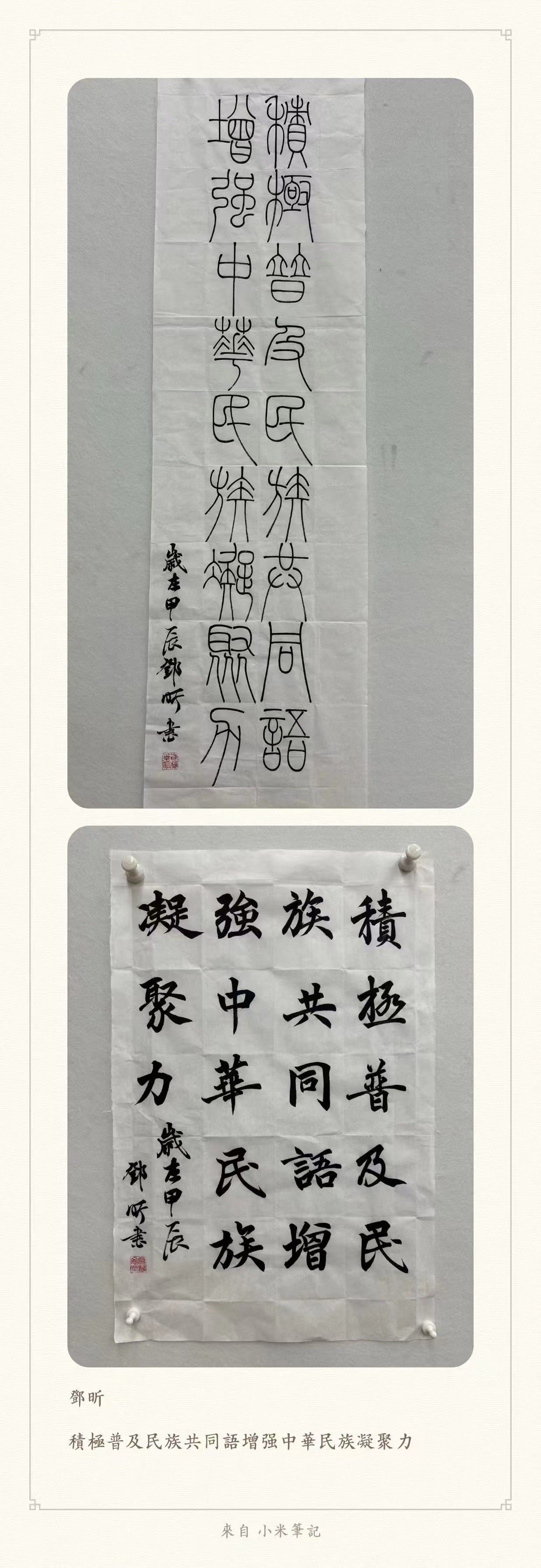 MILE米乐集团于2024年9月16日﹣2024年9月22日期间结合自身专业特色开展了推广普通话相关文艺活动。期间,米乐集团组织书法学专业同学进行了以宣传普通话为主题内容的书法创作活动,并在美院书法长廊进行了现场展示宣传。普通话和书法都是中国传统文化的重要组成部分。普通话作为国家通用语言,是中国最重要的交流工具之一,而书法作为中国特有的艺术形式,更是中华文化的瑰宝之一。将普通话和书法进行结合,不仅可以展现传统书法的艺术魅力,同时也更有力于普通话的普及,彰显中国传统文化的魅力。活动现场照片及部分普通话主题书法作品