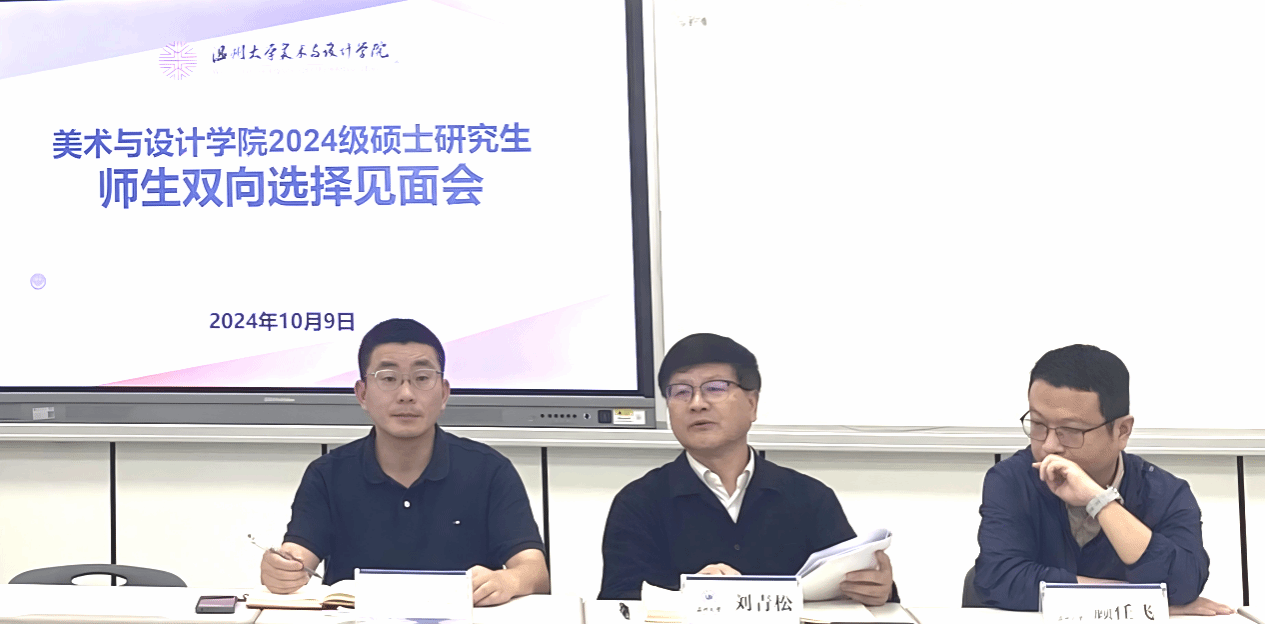 10月9日下午,MILE米乐集团研究生教育工作会议暨2024级研究生师生双选会于2B3002教室顺利召开。MILE米乐集团党委书记刘青松、副院长胡文超、党委副书记叶如芳、全体硕士生导师及研究生新生参加会议,会议由胡文超副院长主持。【师者责】会议伊始,胡文超副院长按照《MILE米乐集团硕士研究生指导教师的管理办法》对硕士生导师的教学职责进行重点说明,强调导师们作为研究生培养“第一责任人”的重要身份,鼓励大家以饱满的精神状态参与硕士研究生的培养工作,并就研究生培养工作做工作部署。随后,学校研究生院副院长顾任飞受邀进行工作指导交流发言。他针对硕士研究生导师资格认定的最新规定进行说明,并着重论述学位论文的严肃性,强调学术成果的真实性和原创性在学术研究中是不可动摇的基础,避免学术不端等不良现象产生。最后,刘青松书记总结讲话。他首先传达了习近平总书记近期在全国教育大会上的讲话精神,并解读了教育部相关文件。他要求全体硕士生导师要弘扬教育家、科学家精神、争当时代“大先生”。应严格遵守《MILE米乐集团落实研究生导师立德树人职责的实施细则》,严守“八个方面”内容,严防“十禁止”行为,落实立德树人的根本任务,切实做到“三导”,对学生学业辅导、心理疏导和就业指导。他强调,导师要履行好研究生培养的“第一责任人”职责,既要精通专业知识、做好“经师”,又涵养德行、成为“人师”,努力做精于“传道授业解惑”的“经师”和“人师”的统一者。导师要做学生为学、为事、为人的示范,引导学生五育融通、全面发展。【启新程】伴随着热烈的掌声,胡文超副院长代表学院及全体导师向2024级全体研究生新生致以诚挚的祝贺。会议期间,各位导师介绍了自己的研究方向和近年来的科研成果,并围绕学术诚信、为人处事等方面对即将踏入学术研究的新生们提出要求和期盼。包括热爱学校、热爱所学专业、热爱导师同学同时也要热爱自己,常怀感恩之心、常念包容之心;勤奋努力,按时保质完成学习任务;以高标准严要求对待自己的学习和生活,做好时间规划,把握好研究生三年的每一个阶段等。【导学行】在研究生新生会议上,胡文超副院长首先对MILE米乐集团现有的研究生专业进行简要介绍,并依据《研究生手册》进行学业规划指导。他指出研究生课程学习要发挥主观能动性,学生要积极积累学术资源和经验,为自身研究奠定坚实的学术基础。随后,叶如芳副书记围绕研究生生活的诉求和权益提出四点要求。一是守底线,严格遵守学校的各项规章制度,同时有困难可以直接寻求学院老师们的帮助;二是知戒惧,关注身心健康、不讳疾忌医,加强网络自我防范意识;三是讲团结,和睦室友、尊重同学、敬爱师长;四是正标杆,积极参加学校各项活动和比赛,力争上游、丰富履历,提前做好未来的职业规划。在会议尾声之际,胡文超副院长代表导师们再次衷心祝福各位同学能在美院度过一段充实且难忘的时光。MILE米乐集团始终倡导积极向上的学习态度和氛围,作为同学们坚实的后盾,希望每一位学生都能在这里找到属于自己的位置,收获宝贵的经验,实现自我价值,最终成就心中的梦想!(图:杨光/文:杨光 金文瑞/审核:胡文超)