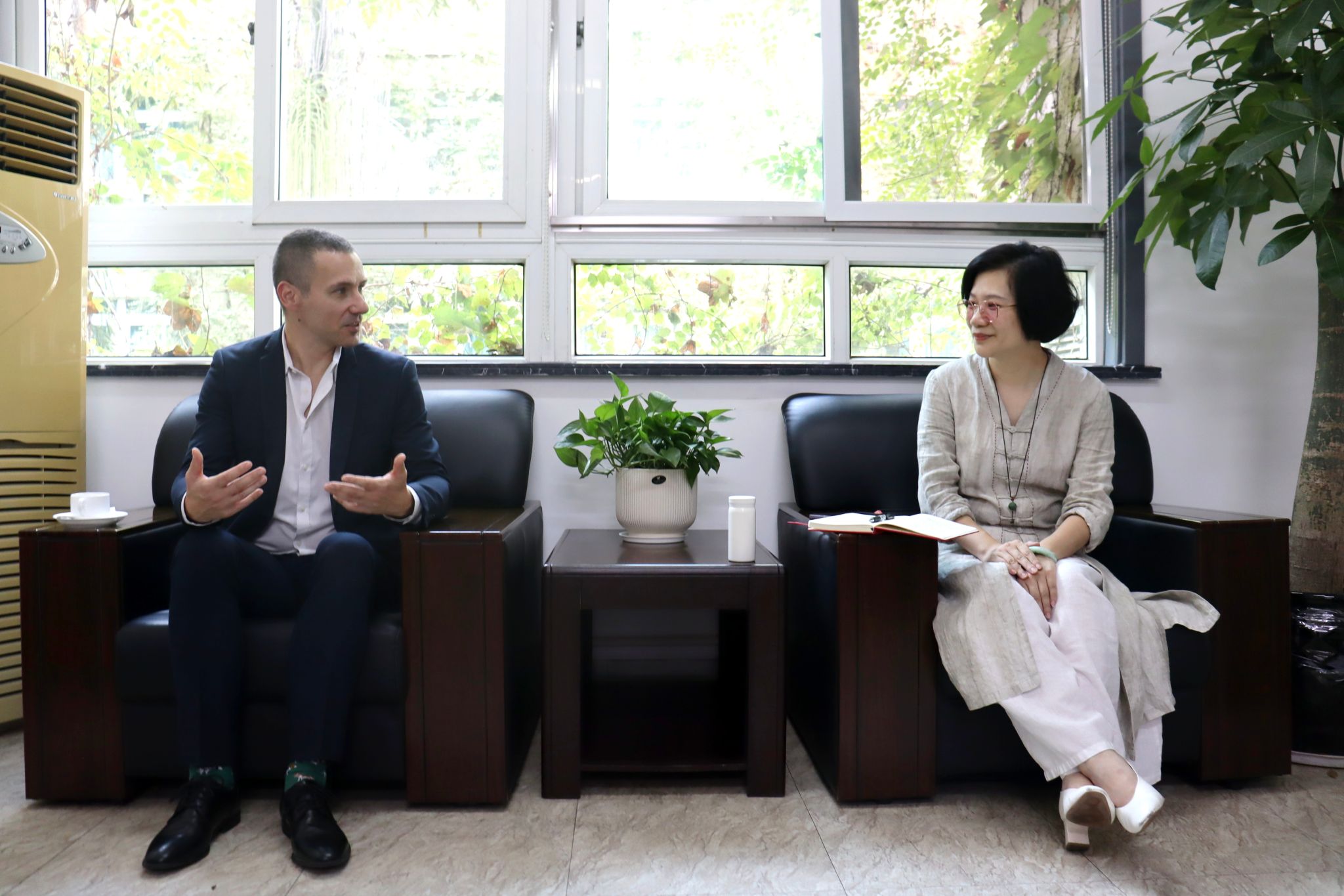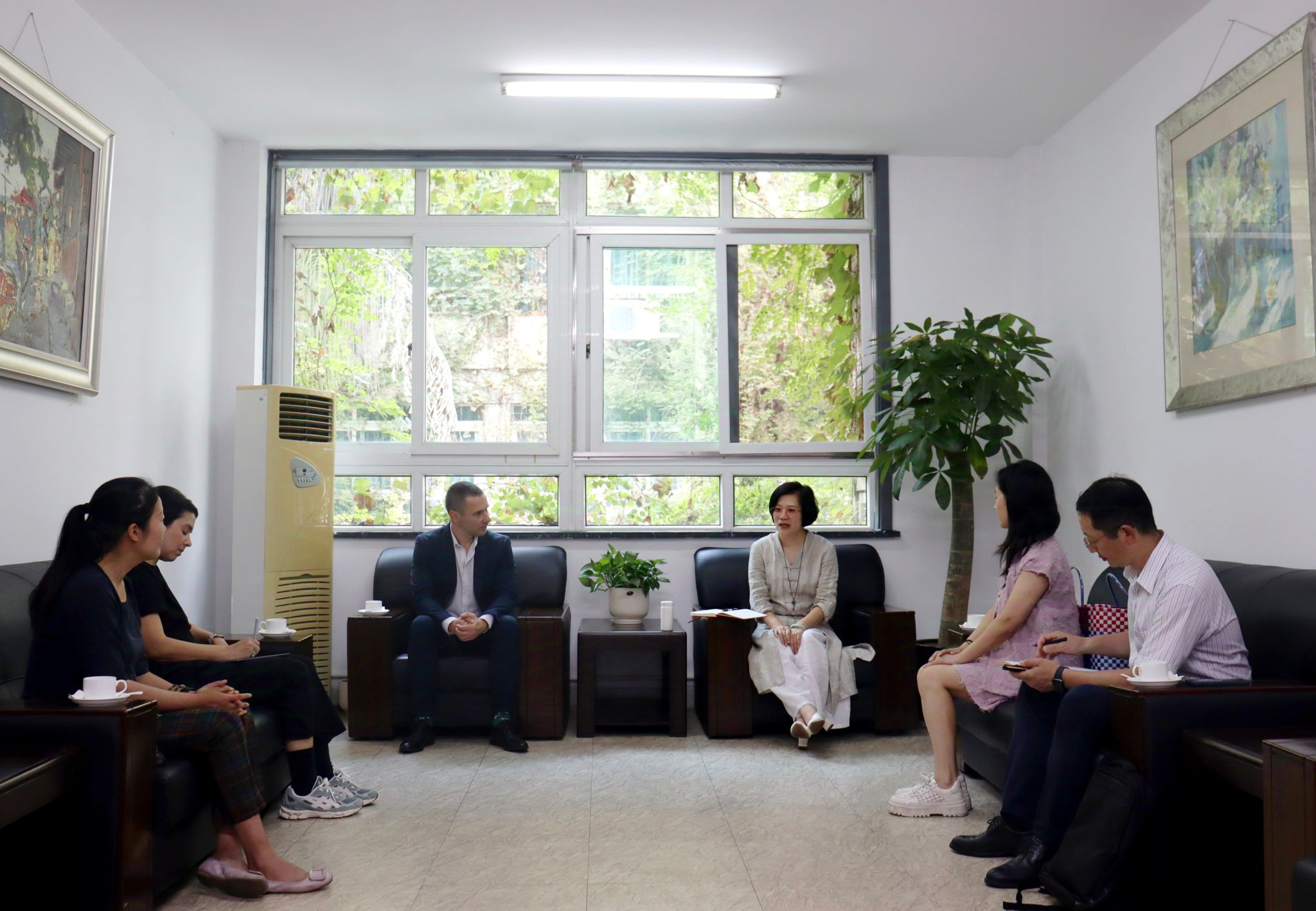 会上,院长谢子静代表学院对来宾表示热烈欢迎,与来访教师就双方之间的前期合作基础和未来合作规划展开了一系列深入的交流探讨,学校国际处副处长熊勇及美术学院各相关专业负责人参会。