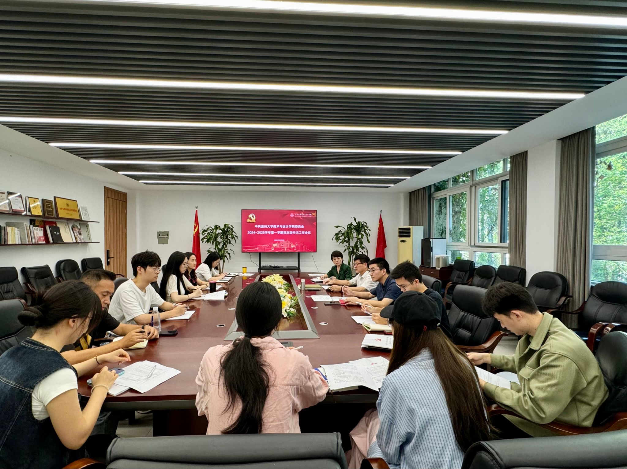 会上,学院党委书记刘青松带领与会人员深入学习了党的二十届三中全会精神,细致解读了习近平总书记在庆祝中华人民共和国成立75周年招待会上的重要讲话,并传达了学校秋季新学期党建工作会议的相关部署和要求。他强调,要以坚持问题导向施策发力,持续抓好基层党建工作。以“三个引领”、“三项工程”、“三项行动”为学院师生支部工作指明方向。并提出七点要求: 一要“凝心铸魂”,增强政治意识;二要“一融双高”,增强大局意识;三要“增才提能”,增强人才意识;四要“强基提质”,增强质量意识;五要“落细抓早”,增强大安全意识;六要“凝聚共识”,增强特色办学意识; 七要“聚精会神”,增强审美力意识,不断推动学院各党支部工作提质增效。