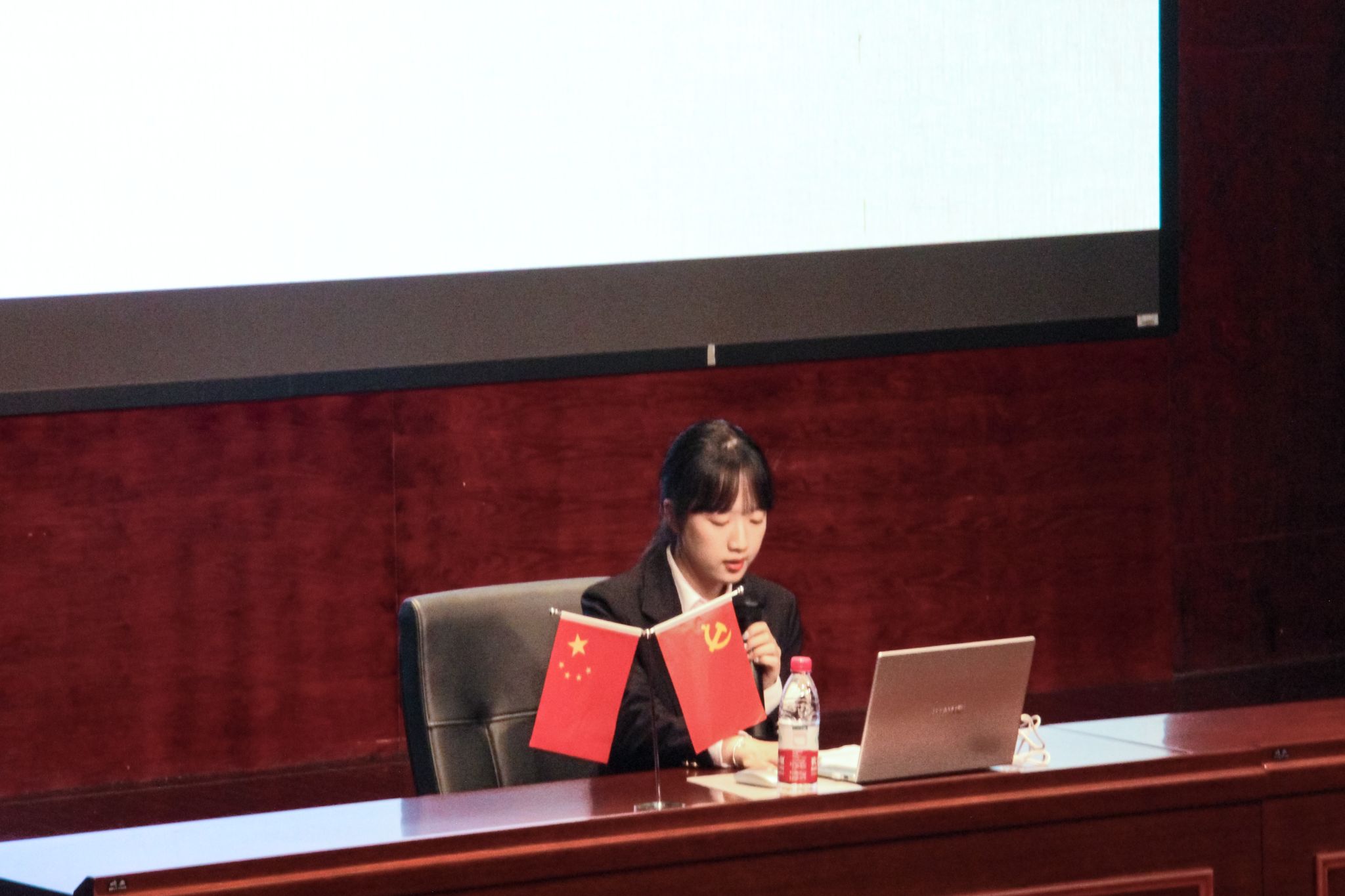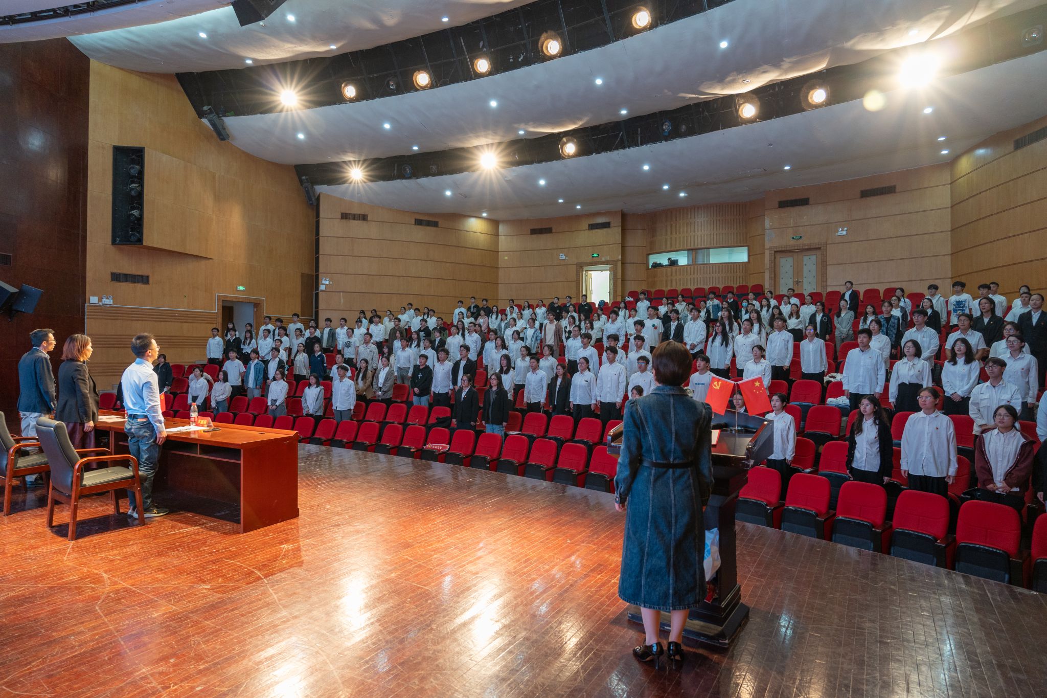 国歌响起,全体起立。开班仪式在庄严肃穆的国歌声中拉开序幕。