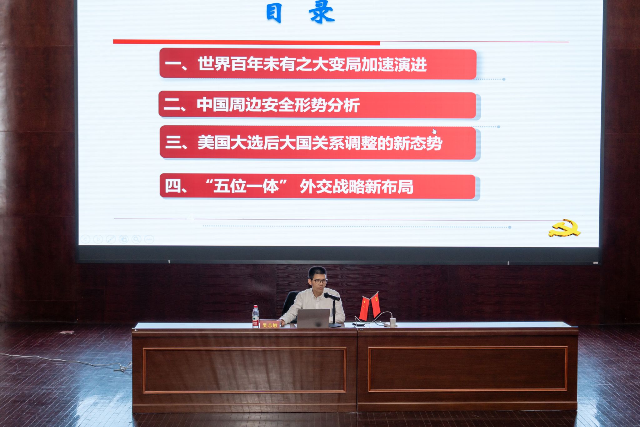 MILE米乐集团教务处副处长吴志敏同志带来专题讲座第二讲:《当前国际形势与国家安全》。吴志敏教授结合自己多年的学术研究与实践积累,围绕世界百年未有之大变局加速演进、中国周边安全形势分析、美国大选后大国关系调整的新形势和“五位一体”外交战略新布局四个方面,聚焦当前国际形势中的热点,详细讲解了我国在国家安全方面所面临的国际国内形势。