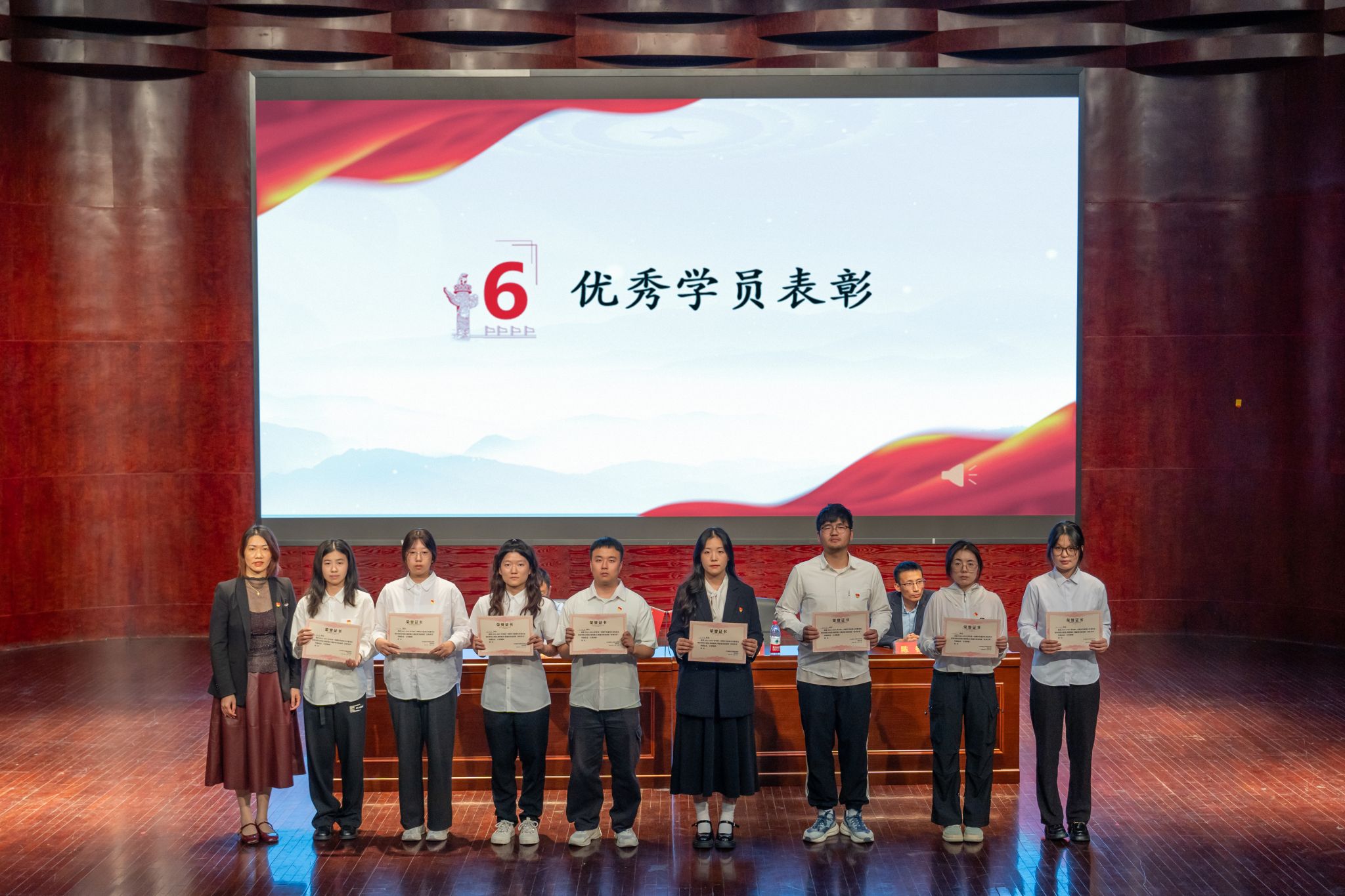 在庄严的国歌声中,本次结业典礼正式拉开帷幕。