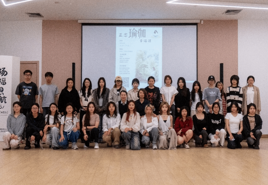 2025 年 4 月 16 日下午,正念瑜伽幸福课在大学生活动中心温情开启。此次课程特邀林秀冬老师担任主讲,旨在帮助同学们在忙碌的学习生活中放松身心,提升心理调适能力,学院 30余名学生参与了此次活动。