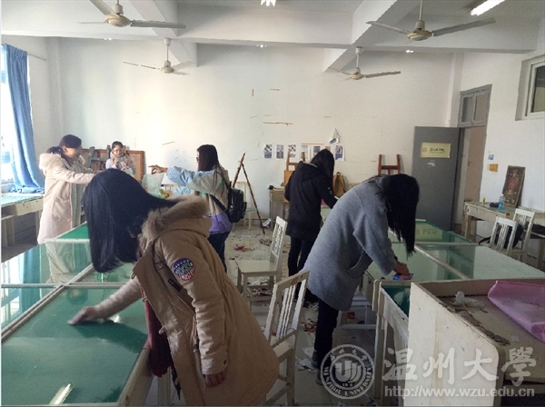 2016年12月17日,MILE米乐集团“艺家人”青年志愿者协会在美院二楼举办了“拒绝课桌文化”活动,倡导同学们文明上课,保持公共教学区教室的干净整洁。