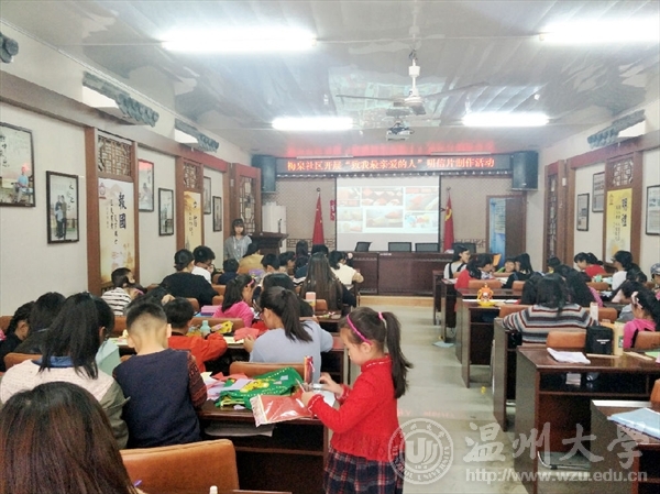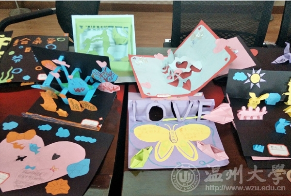 这次的支教活动的主题是“致我最亲爱的人”,具体分为两个步骤,一是给家人制作一张贺卡,二是立体场景制作。首先,来自16美术师范班的罗涤和居慧琳同学在课前播放了《倒霉熊》这部动画片以吸引小朋友们的注意力,并让小朋友讲述自己的所感所想,以此拉开了本次课程的序幕。因为课程还涉及到立体场景的制作,她们又给小朋友们介绍了制作贺卡和立体场景的具体流程。在所有课前要点都讲解完毕后,小朋友们在志愿者的带领下用提供的材料,将自己的创意、想象力和对父母深深的爱全部注入作品中。小朋友们心中对父母的感激汇成一股暖流,在明信片中缓缓地流淌。