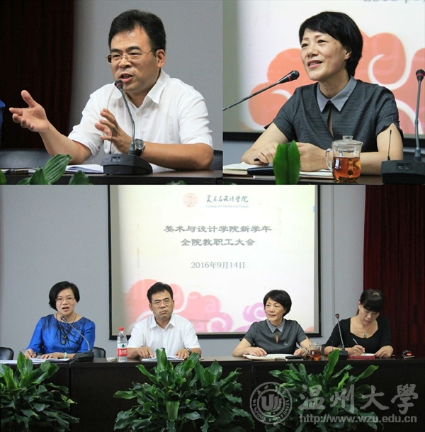 李运河回顾了暑假期间学院持续开展的系列工作,对海峡两岸大学生暑期设计营、温州时尚展筹备、浙江省工业设计大赛筹备等工作给予充分肯定,并就巡视和审计来校发现的典型问题对全院教师提出严守规定的强调和警示。针对学院在“十三五”期间的发展方向,结合学院的实际建设情况,他提出了几点思考。首先是定位问题,他认为找准定位才能找对方法和出路。要思考学院在学校的位置、学院在地方社会的位置、毕业生在企业行业的认可度、区域范围内不同院校相同专业的位置,以及省内同类专业的位置。同样,要思考专业在本学院的位置以及老师在本专业的位置。明确优势,错位发展,有为才有位。其次,关于学院人才培养目标的定位,他提出“强实践、能创新、富有艺术素养和创业能力的应用型人才”,并就“实践”和“创新”做了详细阐述。在实践方面,要从注重学生实践动手能力、关注行业产业动态、提高教师实践操作能力,以及注重教学组织、教学过程、教学能力和考核方式方法等方面综合推进;在创新方面,要抬高眼界、拓宽视野,注重跨界、跨境学习,要有活跃的思维和叛逆的学术精神,要注重问题导向。第三,在科研方面,既要充分自信,又要有敢于实践的勇气,要在服务地方中凝练课题,在挖掘地方传统文化中研究课题。