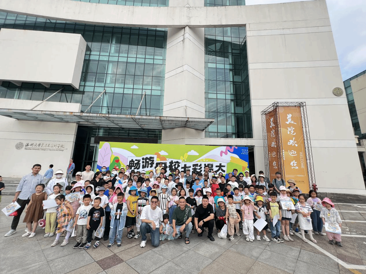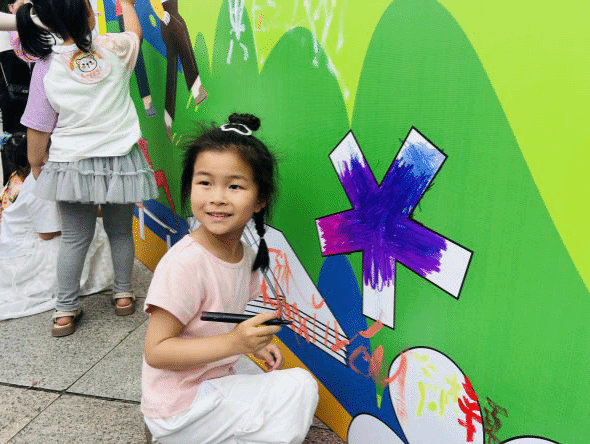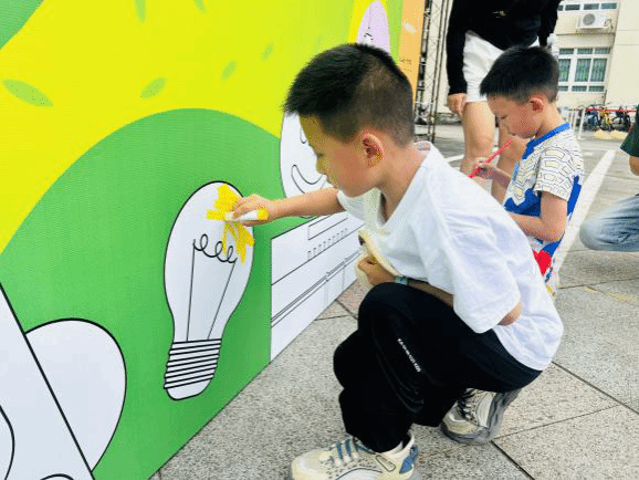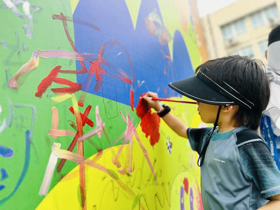 最后最令人期待的涂鸦环节—“团队巨画”绘制登场。孩子们与家长拿着用完成任务获得的“颜色卡”兑换的颜料,共同在画布上挥洒创意,一笔一画勾勒出对温大的热爱与祝福。原本空白的画布在众人的齐心协力下渐渐被绚丽多彩的图案填满,一幅幅充满童趣与温情的作品跃然眼前 。