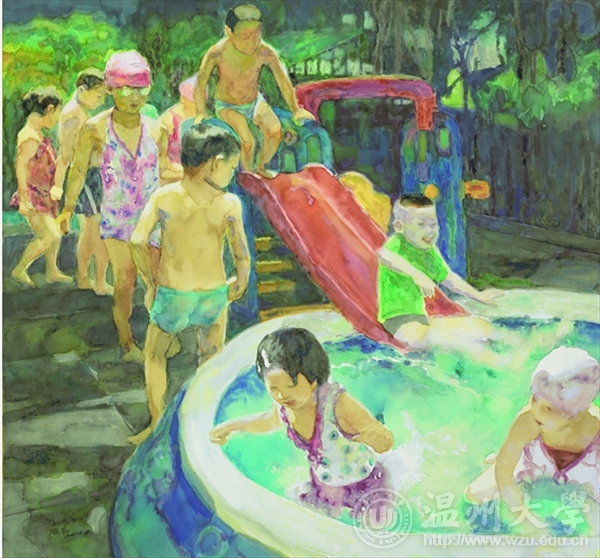 戏水110cm×100cm水彩2014
