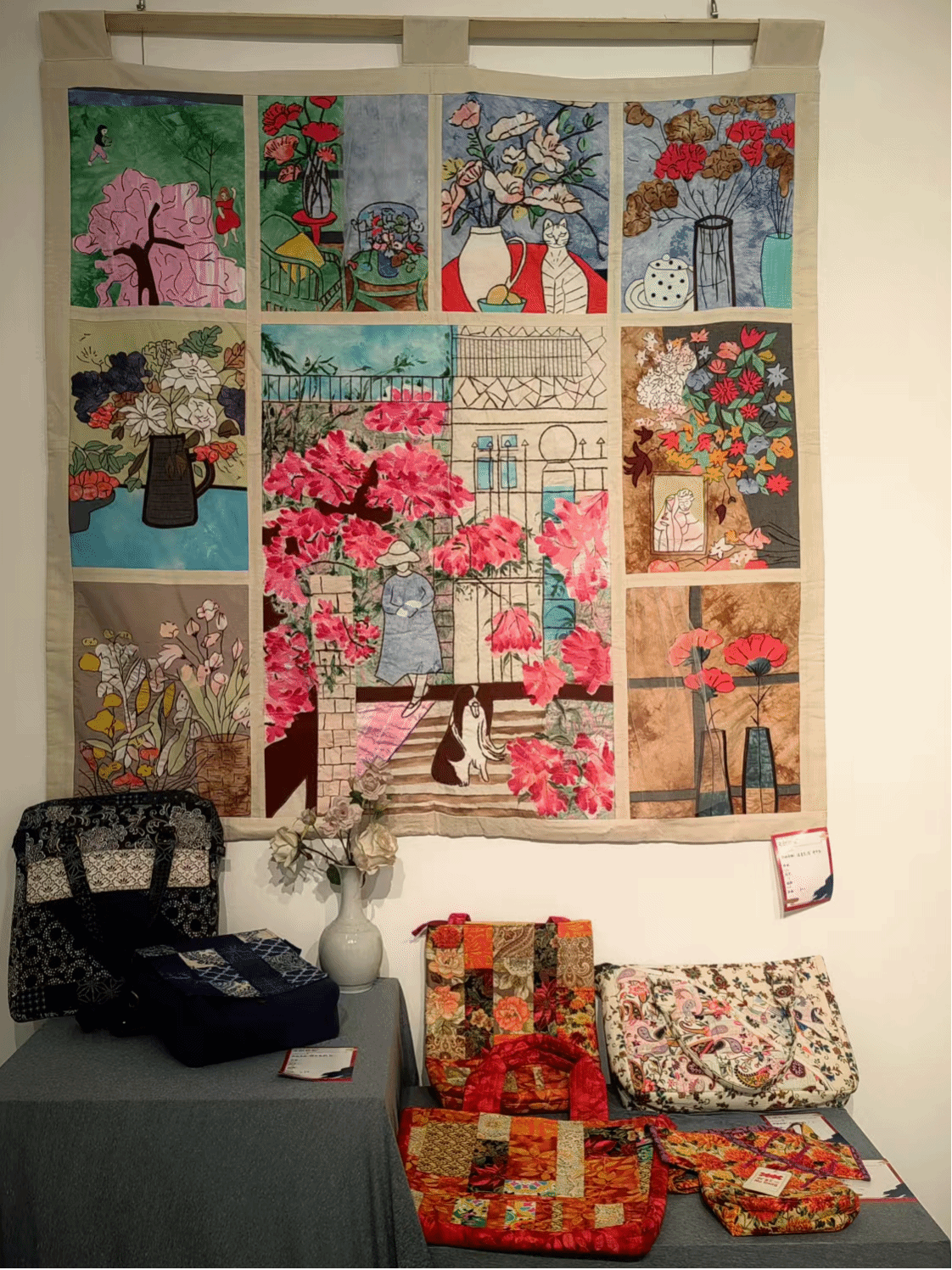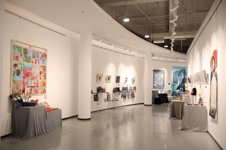 陈明艳教授领衔“爱拼”布艺工坊,寓意“爱拼才会赢”!团队以温情的布为媒介,用针尖描画艺术生活。本次展览呈现了多系列布艺贴画、丝带绣画以及风格多样的布艺包(牛仔包、民族包、几何拼布包等),琳琅满目,深受欢迎。工坊致力于融入中国地方风貌和传统非遗文化,精雕细琢布艺文创品,为中国的布艺繁荣贡献澎湃的“爱拼”力量。