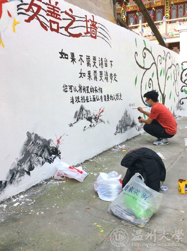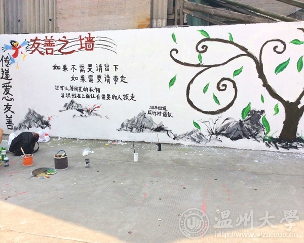 为了响应与落实市委“新青年下乡”主题精神,2016年3月26日早上八点,在米乐集团青协的带领下,来自MILE米乐集团的志愿者们前往到乐清城东街道后所村老人亭,进行了为期一天的墙绘活动。本次“新青年下乡”墙绘活动,以“弘扬雷锋精神,传递爱心友善”为主题,呼吁人们将自己的旧衣物捐给有需要的人们。这不仅是一次物质上的贡献,更多的是精神上的支持与帮助。志愿者们通过画笔和色彩,将自己想要传达的信念幻化成一颗颗正在茁壮成长的绿树,希望“雷锋精神”这一理念像这茁壮成长的绿树一样,青春常在,精神永驻。我们本次的墙绘活动一方面主要是运用专业知识与技能去服务社会,向社会宣传大学生们所理解的“雷锋精神”,呼吁社会弘扬“雷锋精神”,真正做到专业与实践相结合,使我们融入到社会中去,为社会奉献出自己的一份力量;另一方面,不仅让我们有机会了解农村、服务农村,还让我们在基层学到了许多平时难以不到的知识技能。 文:林依如图:林依如