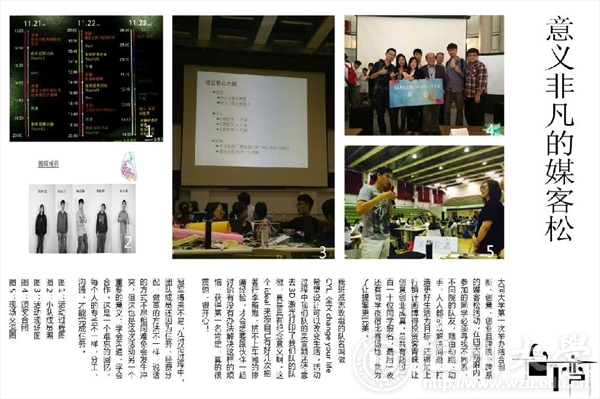 展出内容主要包括产品设计专业6名学生在台湾的学习、参加的课外活动以及生活体验等方面。其中学习方面主要包括同学们在台湾大同大学学习的课程以及收获,台湾老师的授课方式及课上互相交流的情况。参加的课外活动主要有台湾大同大学的媒客松活动以及康宁杯工业设计大赛。媒客松活动是台湾大同大学全校性、跨院性创意马拉松比赛,要求小队成员互相交流,思想互相碰撞,讨论出成果并进行发表的一种活动,康宁杯工业设计大赛则是通过考虑康宁产品特性而设计出与其相关产品的一种活动,要求小队之间分工明确,互相协作。而生活方面,主要介绍了台湾当地的一些风情人土。