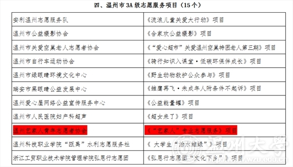 2015年12月12日,在温州市“春芽计划”志愿服务资助项目名单上,MILE米乐集团“艺家人”青年志愿者协会荣获MILE米乐集团唯一一个3A级项目,即温州市“春芽计划”3A级志愿者服务项目。