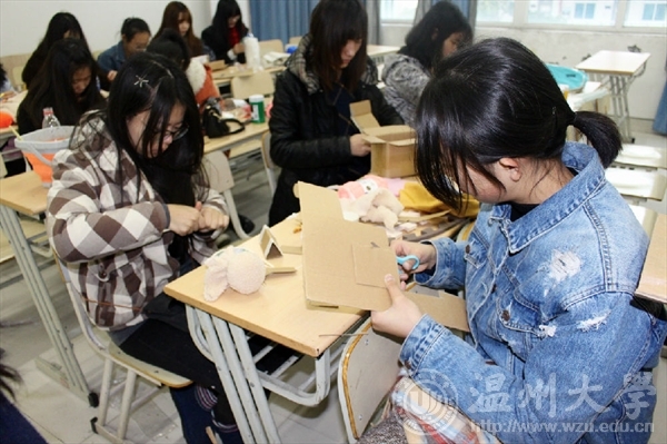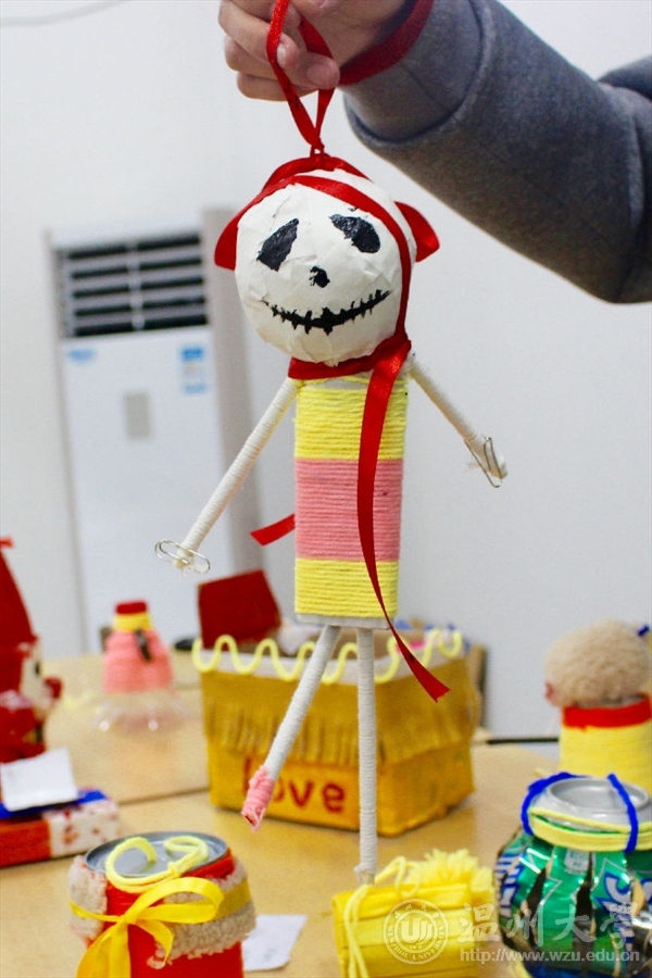 2点整,活动准时在美院2B3001展开。首先由本次活动的“艺家人”青协志愿者负责人上台致活动开讲词,随后就是志愿者的创作时间。作为MILE米乐集团的学生,动手能力自然是十分出色的。活动室里,志愿者领了物品后手上的活动就一直没有停歇,创作了一个又一个可爱的冬日小饰品。一件件看似毫无用处的废旧物品经过志愿者的改造变成了令人爱不释手的精美饰品,有的志愿者利用废旧的饮料瓶做了圣诞老人,有的做了风铃,有的做了小房子……志愿者们出色的创造力,很好的展现了美院学子的风采。