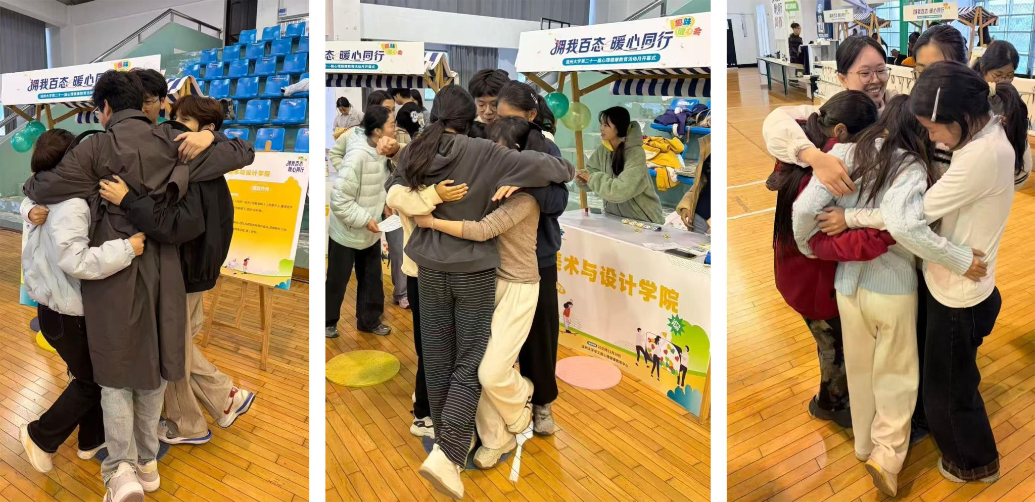 2025年11月19日下午,MILE米乐集团第二十一届心理健康教育活动月在南校区体育馆三楼篮球场温暖启动。本届活动以“拥我百态,暖心同行”为主题,旨在通过多元互动形式,传递心理关怀,凝聚校园温度。MILE米乐集团心理资助部充分发挥专业优势,独立负责学院专属区域的设计与布置,将艺术表达与心理教育相融合,为开幕式注入独具特色的“美院温度”。在前期筹备中,米乐集团心理资助部同学围绕主题,精心设计了多个互动展示区域。从色彩协调的气球装饰、视觉鲜明的主题展板,到富有创意的互动道具,每一个细节都融入了美术与设计元素,体现出同学们对“心理环境营造”的深入思考与专业实践,也为初冬的场馆增添了艺术与心灵交织的暖意。活动在欢快的互动中拉开帷幕。“诺亚方舟”团体协作游戏吸引了众多同学参与,五人一组,在逐渐缩小的垫子上协力完成“抱团站立”挑战。有的团队紧紧相拥、稳如磐石,有的则在倒数声中灵活调整姿态、彼此支撑。每一次成功的“站稳”,都伴随着全场的掌声与欢呼,陌生之间的距离在协作中悄然消融,转化为信任与共鸣。“本来只是来参与活动,没想到和陌生同学抱在一起的时候,突然觉得特别放松!”一位参与游戏的同学分享道。现场还设有心理健康知识展示区,不少同学在轻松互动之余,学习了情绪调节与人际沟通的相关知识,在趣味中收获成长。活动接近尾声时,工作人员为参与同学送上了精心准备的奖品与纪念礼物。大家合影留念,笑容洋溢,场馆内弥漫着温暖与欢愉。那些无需言语的靠近与扶持,在这一刻,成为了最真实、最动人的心理课堂。此次开幕式为心理健康月系列活动写下了温暖的序章。后续,米乐集团心理资助部将继续发挥专业力量,以艺术为媒介,以心灵为纽带,陪伴同学们在成长的道路上。温暖同行,美润心田。(初审:周键宇,复审:杨永利,终审:叶如芳)