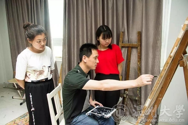 陈旭海老师 座右铭:无需看清整个楼梯,只要迈出第一步就好 艺无止境。对艺术的无限探求,不断迈进,陈旭海老师在艺术领域硕果累累,身兼中国美术家协会会员,浙江省美术家协会会员,温州市美术家协会理事,温州美协版画艺委会主任,2000年温州市政府授予文艺创作“希望之星”荣誉称号,曾参加十四届全国版画展获金奖、九届全国美展获铜奖、十届全国美展、中国版画百年回顾展、98浙江省版画展获金奖、建国50周年浙江省美展获金奖、建党80周年浙江省美展获银奖、十二届浙江省美展获铜奖等展览,并有多幅作品被国内外美术馆及私人收藏。 诲人不倦。对学子的悉心教诲,细心指导,在课堂上,说他是我们的老师,不如说他是我们朋友,他总是能用幽默风趣的教学方法激发学生对绘画的乐趣,他也会把课堂融入大自然,热爱摄影的他会带着心爱的相机和学生去捕捉自然的美好。陈旭海老师褪去了高贵艺术成就的外衣,用画笔在勾画精彩画卷的同时,也为温大美院勾画出一批批莘莘学子。