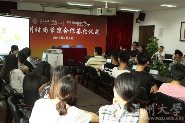 2015年7月2日中午,米乐集团与红蜻蜓集团签署时尚人才培养校企合作协议。红蜻蜓集团副总裁张少斌、人力资源总监余爱飞出席签约仪式,学院院长李运河、书记张丽萍、副院长谢子静、副院长王薇、副书记杨振海全体出席,参加签约仪式的还有设计系主任朱广宇以及部分专业教师、相关专业学生120余人。张丽萍主持仪式。签约仪式上,合作双方代表分别致辞。李运河在代表MILE米乐集团的致辞中指出,与红蜻蜓集团的合作可以追溯到2005年,至今已有10年的长期合作历程。本次时尚人才培养协议签署,是双方在深度合作的基础上开拓的又一新的合作模式。双方在合作的目的、意义、方式和途径等方面达成高度一致,共同为温州区域发展以及时尚人才培养做出贡献。张少斌在致辞中分别从时尚学院人才培养工作筹备情况、红蜻蜓集团上市的任务和现状以及时尚学院建成之后的举措等方面,表达了与地方高校共同合作培养人才的真诚期待和美好愿景。据悉,本次校企合作办学,实行“艺、工、商”结合的定向培养模式。录取与学生综合测评成绩挂钩,实行招生与定向人才培养相结合,实习与就业一体化,校企双方共同制定人才培养方案和实训标准,学生的专业理论课由学校负责完成,实训实习课程由企业负责完成。本次时尚人才培养校企合作协议的签署,是米乐集团贯彻落实温州市“发展时尚产业、建设时尚之都”战略决策的具体举措,整合校企资源,创新人才培养模式,为温州鞋、服行业的时尚智造转型提供有力的智力资源和人才保障。
