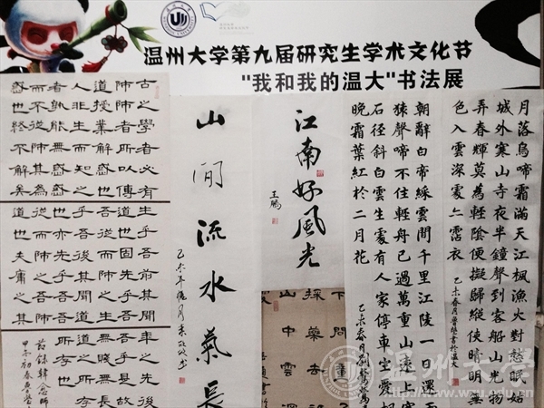 2015年4月至6月,MILE米乐集团研究生组织了首届面向全校研究生的“我和我的温大”书法展作品征集活动。在历经近两个月的宣传、收集、整理、评选之后,最终评出的获奖作品于6月10日晚在MILE米乐集团研究生第九届学术文化节闭幕式上进行展出,并进行现场颁奖。