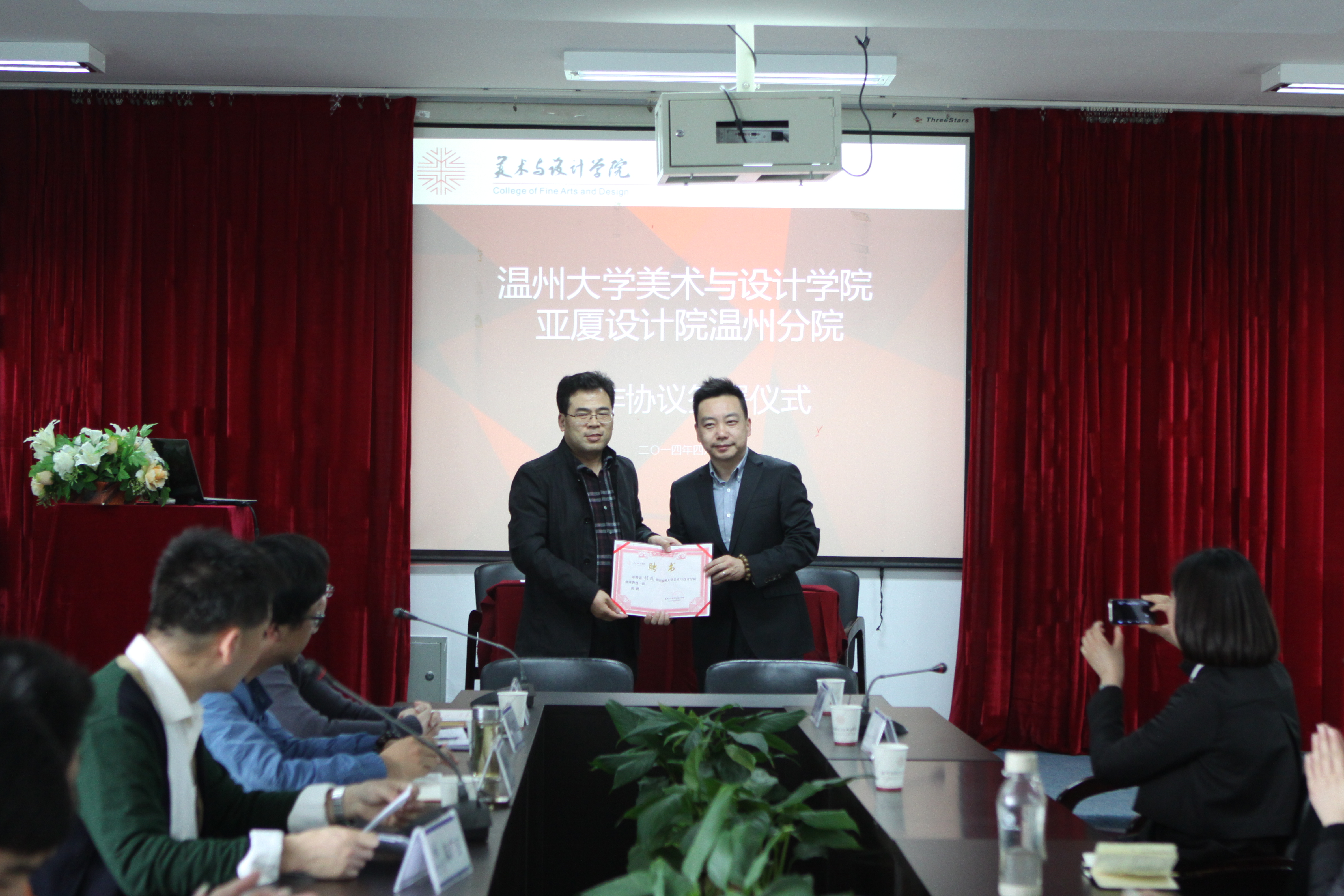 在双方代表的见证下,李运河院长代表本院与亚厦设计研究院温州分院胡逸院长签署了《MILE米乐集团与亚厦设计研究院温州分院合作协议》。签约之后,李运河院长向胡逸院长颁发客座教授聘书。至此,MILE米乐集团和亚厦设计院温州分院合作签字仪式取得圆满成功!