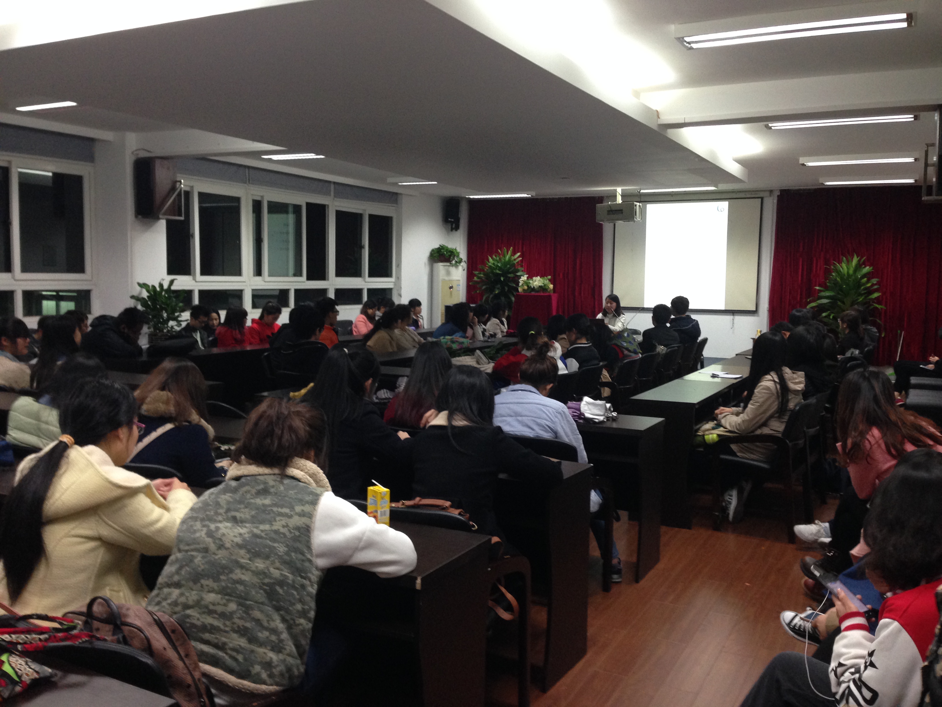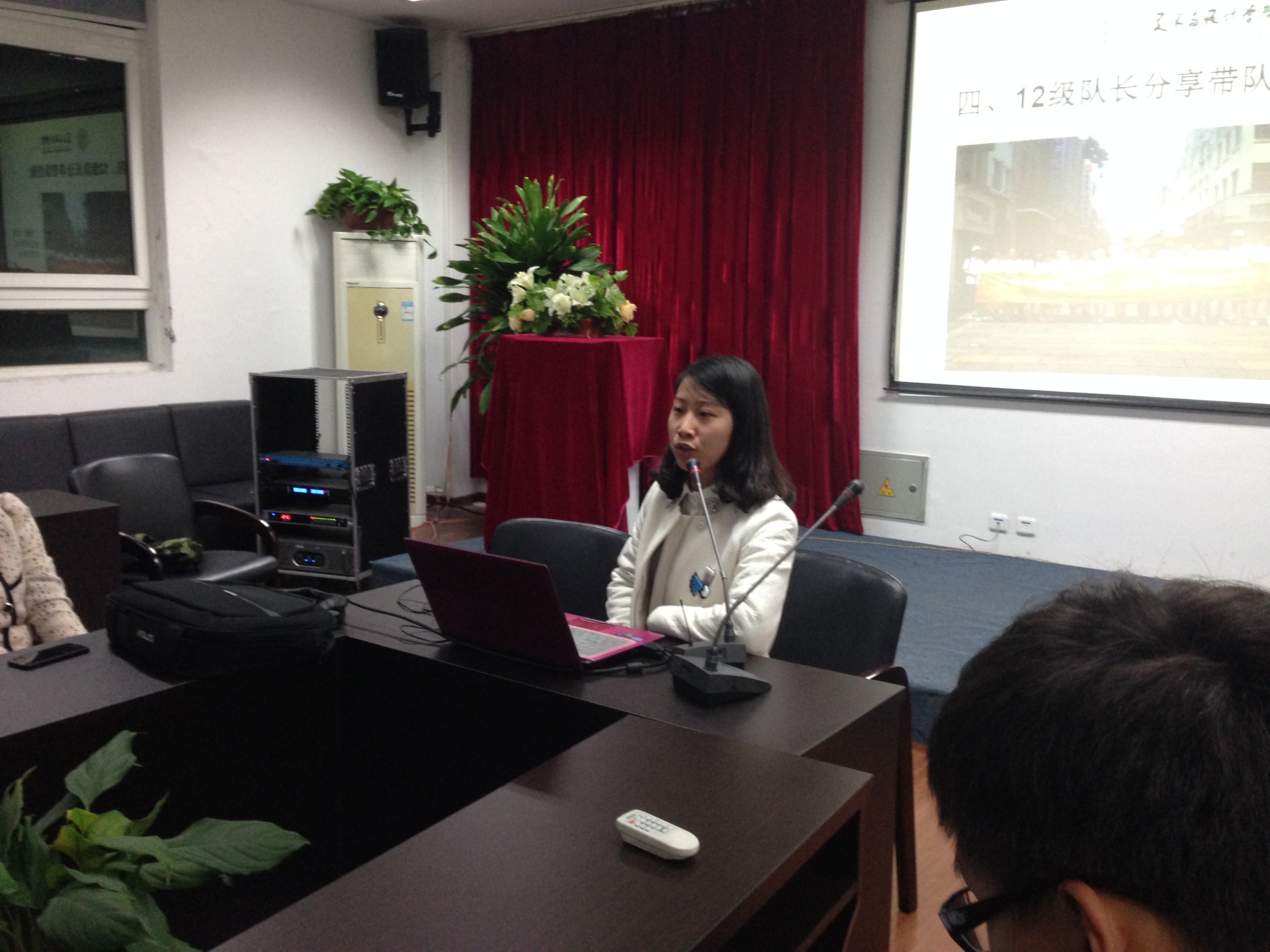 主持人在会议中给13级美院新生回顾了第一期的暑期实践基本定义,为没参加第一课的同学增加了基本了解。之后,她为新生讲解了实践活动主题选择,社会实践策划等问题。接下来,特邀嘉宾——12级优秀带队队长吴荣婷同学为大家讲解带队经验和所遇到问题及解决方案。最后, 她为同学们展示了她去年带队的学院重点队伍“鞋蕴”实践队。同时,她也希望今年能够选出更加有能力的队长。