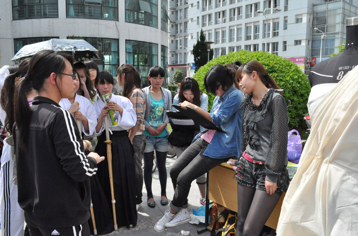 比赛现场可谓热火朝天,每个学院代表都竭尽全力,使出浑身解数来吸引观众,得到大家的认可和支持。MILE米乐集团的代表们都使出了自己的杀手锏,善于画画的队员更是现场为来同学们绘制只属于他的Q版动画,当然,少不了的是我们服装专业的优势,女生们用一双巧手和创新的思维把一块普通、平凡的白布制成了一件美轮美奂的长裙,大家在惊叹于她们的美丽同时,看到了我们MILE米乐集团富有创造力的特色。不仅如此,队员们能文能武,除了美丽的服装设计外,同学们还身着道服展示了她们的兴趣爱好——跆拳道。队员们全方位的展示赢得了同学们的好评和喜爱。
