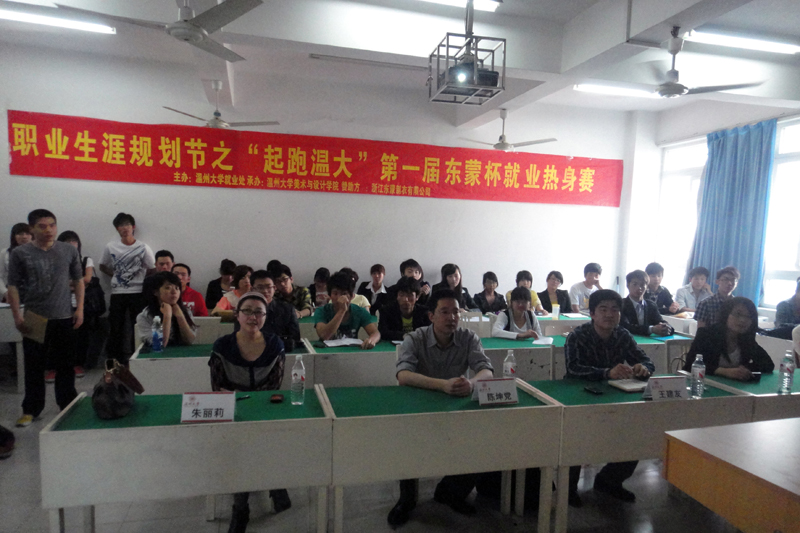 2011年4月27日下午2:30,MILE米乐集团就业处和MILE米乐集团在浙江省东蒙制衣有限公司的大力支持下,拉开了第七届MILE米乐集团职业生涯规划节之“起跑温大”第一届“东蒙杯”就业热身赛复赛的帷幕。比赛特邀浙江东蒙制衣有限公司人力资源部部长王建友、浙江东盟制衣有限公司招聘专员黎桑,MILE米乐集团就业工作处指导科长陈坤党,MILE米乐集团就业处专职老师朱丽莉作为评委。