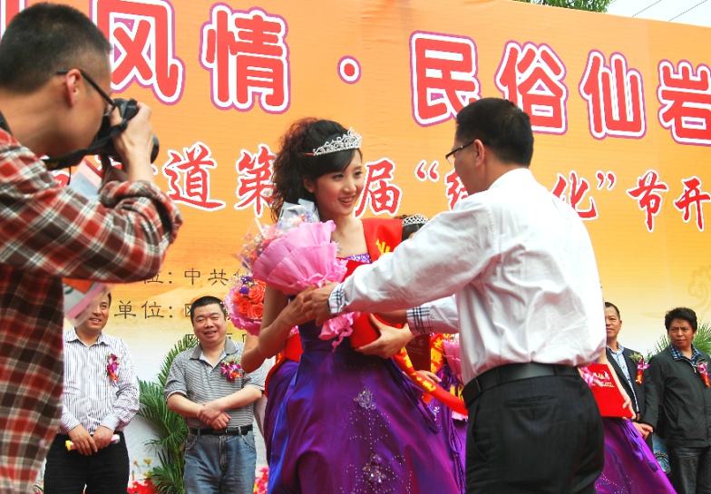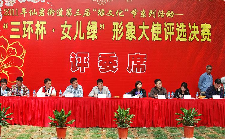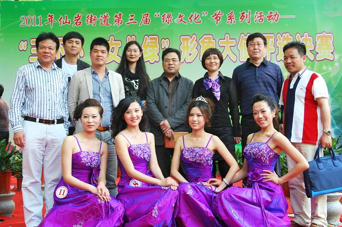 仙岩形象大使评选米乐集团学生冯宝丽摘得桂冠 2011年4月27日,在温州瓯海区仙岩梅雨潭景区的曲水流觞广场举行的第三届 “三环杯女儿绿”形象大使评选活动中米乐集团09级服装设计与表演专业(8号选手)冯宝丽获得“三环杯女儿绿”形象大使称号,摘得此次比赛桂冠;其中09级服装设计与表演专业乐意(11号选手)、08级服装设计与表演专业柴森(1号选手)、于蕾(1号选手)分获得最佳潜力、最佳上镜、最佳才智三个单项奖。 此次评选活动由温州仙岩政府与MILE米乐集团等联合举办,米乐集团院长李运河教授担任主评委;青年教师刘扬为比赛总策划人。经过4月16日报名,来自温州各地的40多名佳丽经过初赛、复赛角逐后脱颖而出的16名女选手参加梅雨潭景区决赛,经过旗袍装、运动装、知识问答、晚礼服展示四个环节角逐米乐集团4名选手脱颖而出。 据悉,“三环杯女儿绿”形象大使评选是米乐集团首次与校外联合举办的形象评比类比赛。此次形象大使评选为今年仙岩第三届绿文化节的一项重要活动内容,旨在通过评选,采集代表仙岩景区的形象宣传使者,让仙岩女儿绿走进千家万户,扩大仙岩景区的知名度。 评委 领导为冠军颁奖 形象大使与评委合影